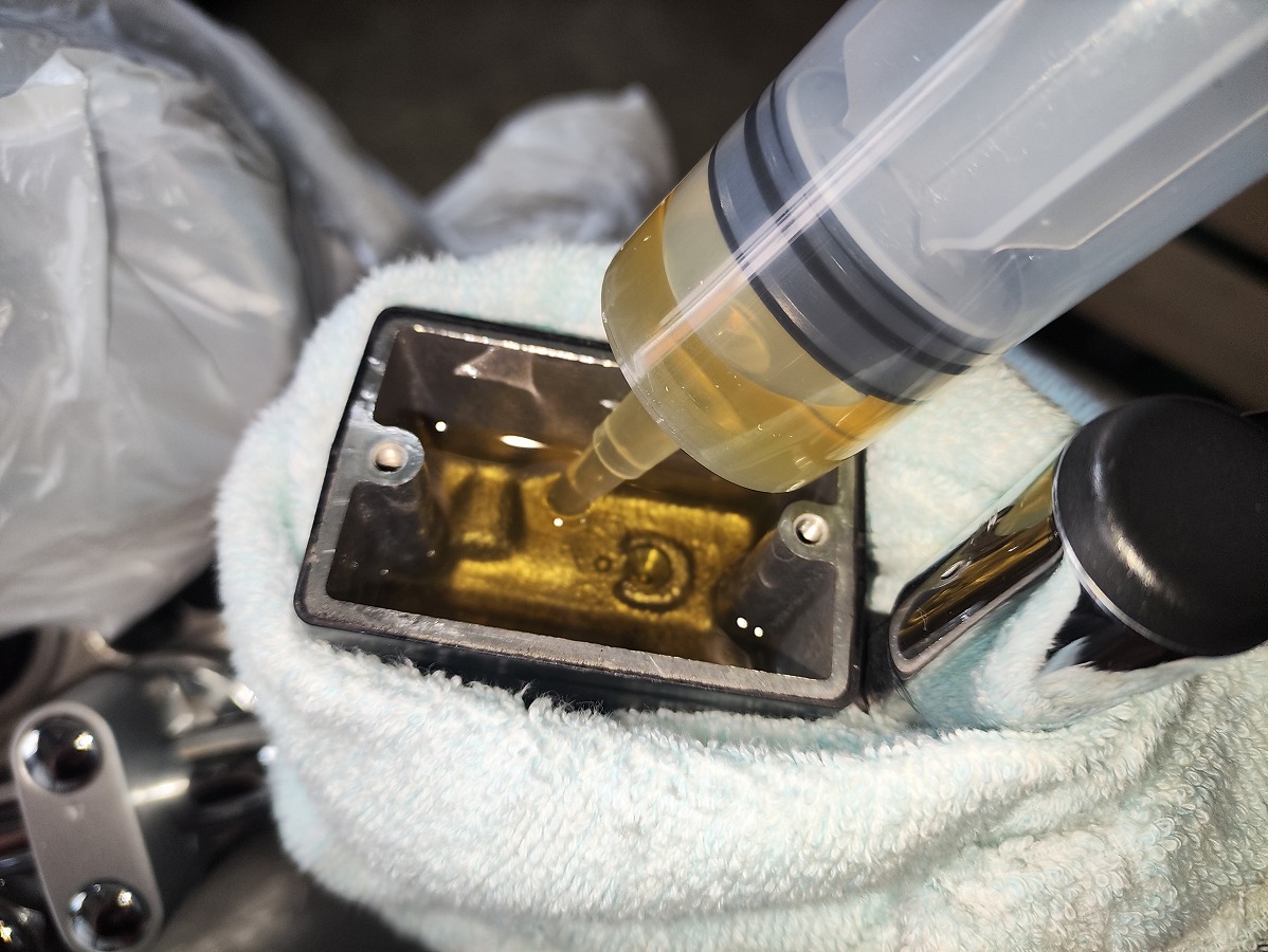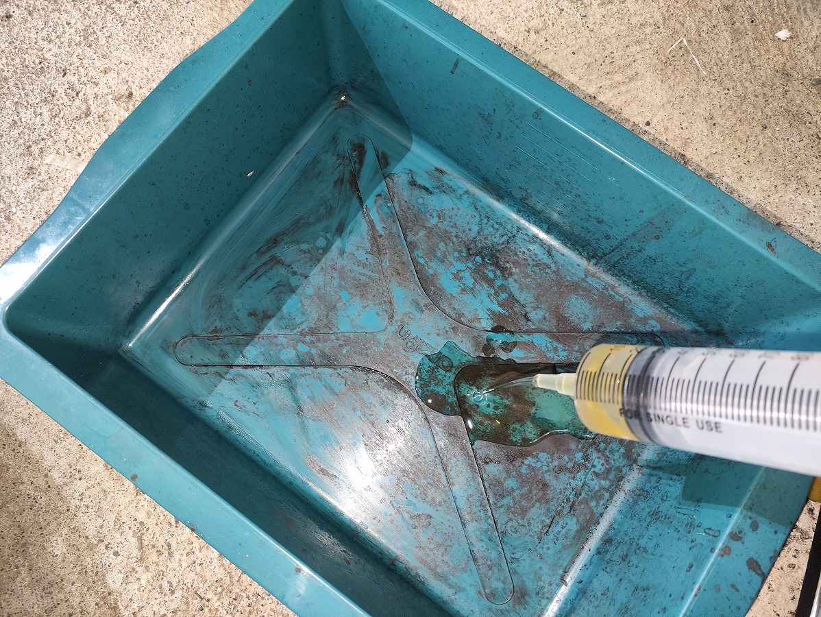 ※エアー混入を防ぐためフルードは少量残し、最後まで吸い上げないよう注意してください。