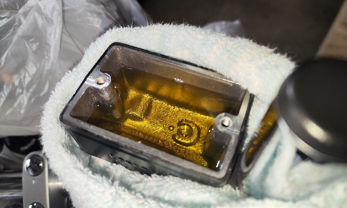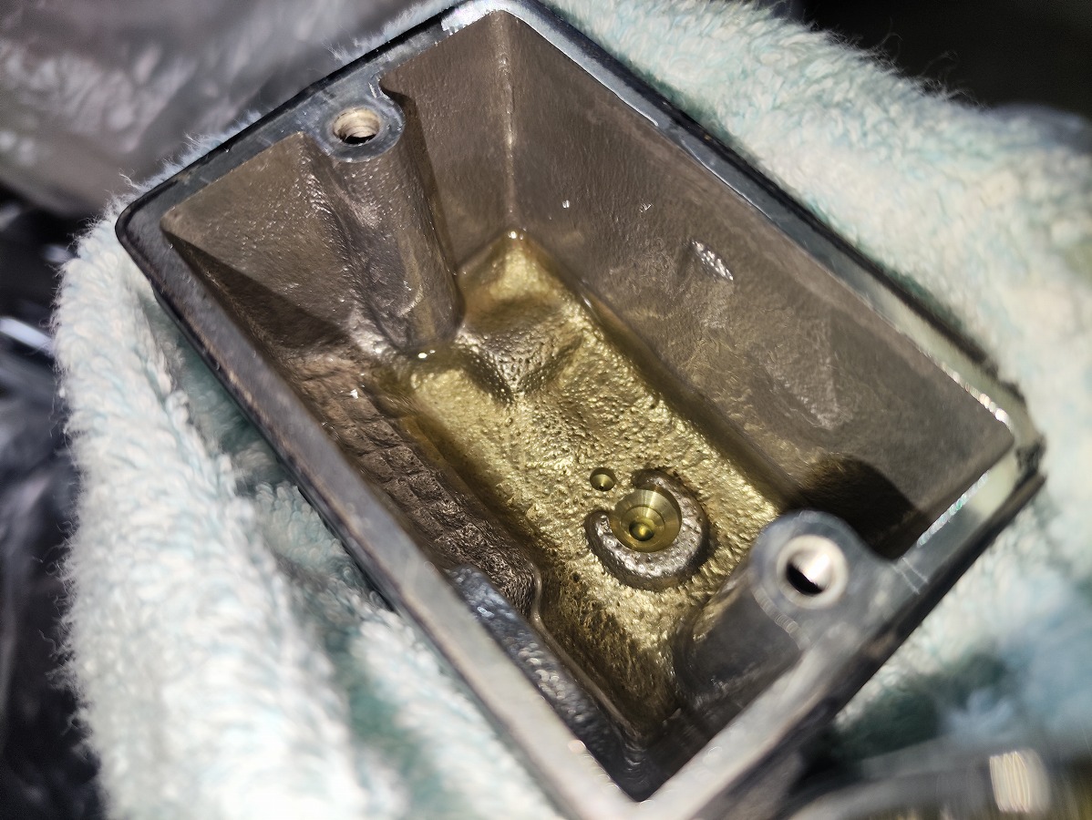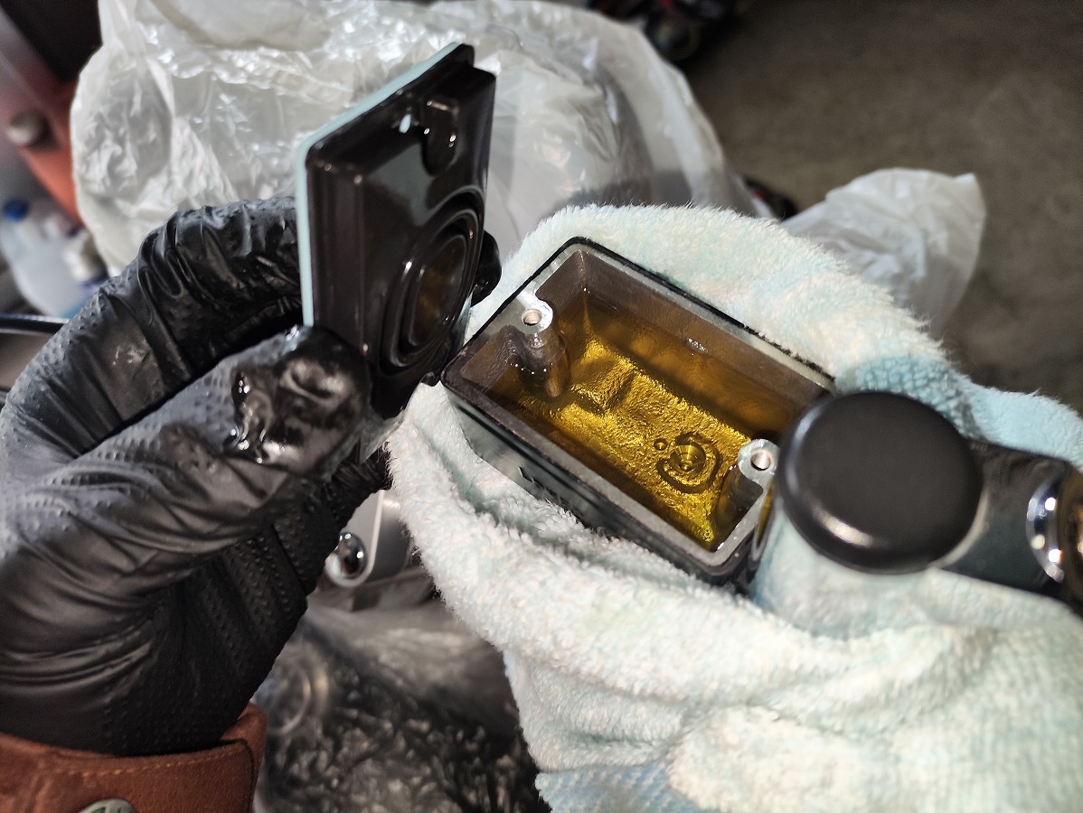 - ブリーダー周辺をパーツクリーナーとウエスで清掃し、ブリーダーキャップを忘れずに取り付ける