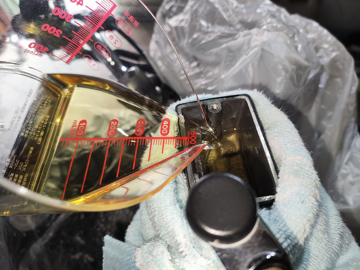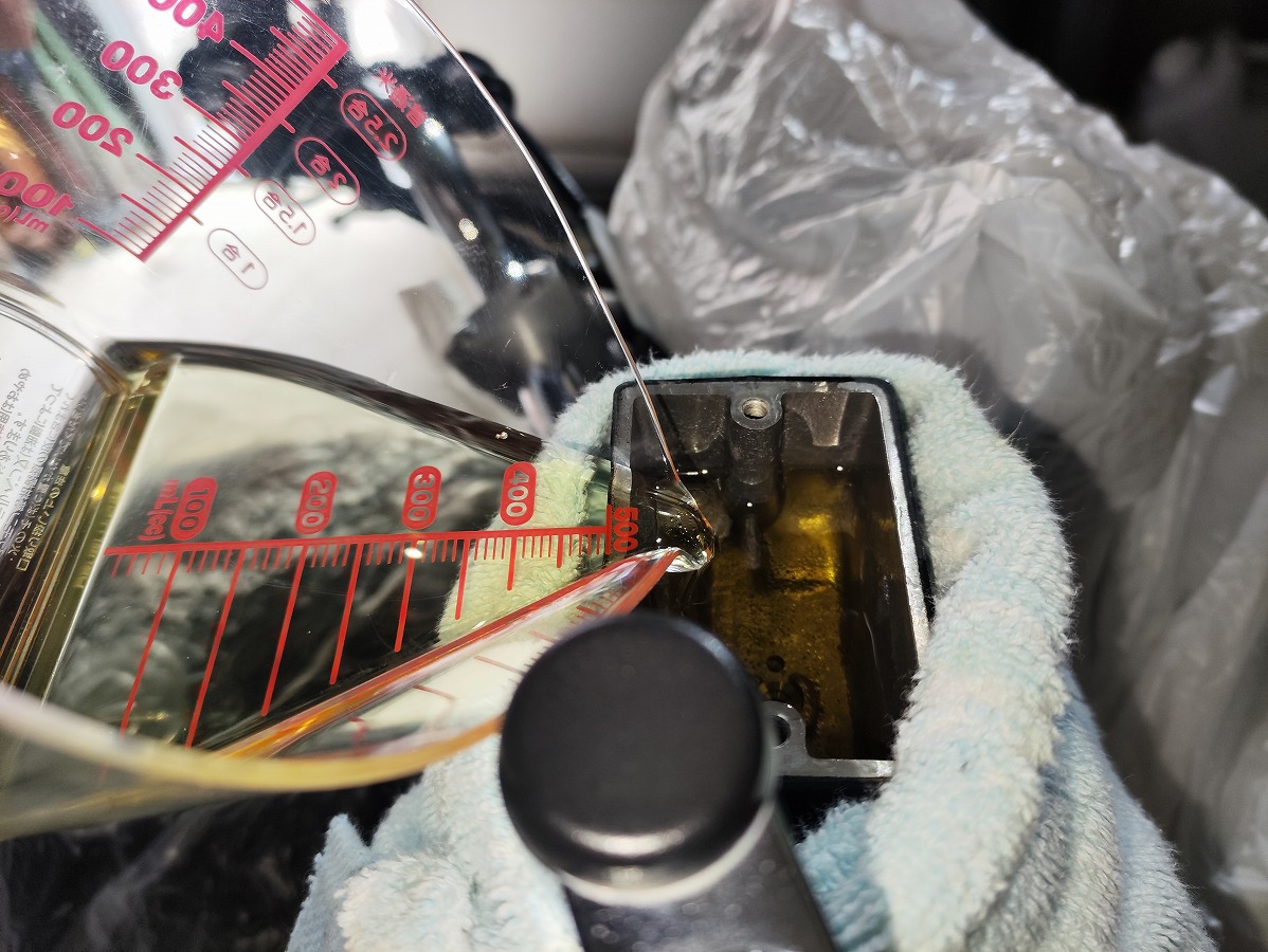 ※筆者は計量カップを使用していますが、こぼれにくさや安全性を考えると、シリンジなどを使って充填する方法がおすすめです。