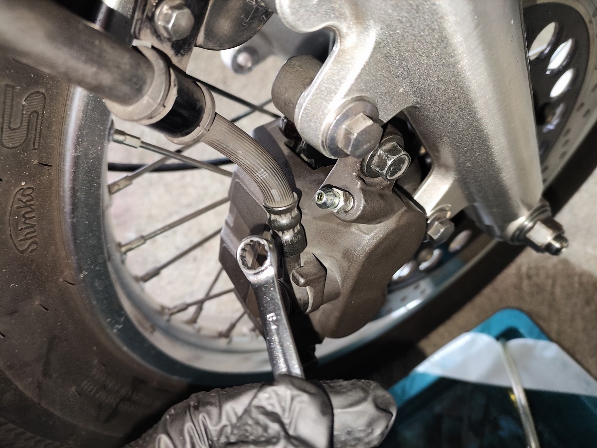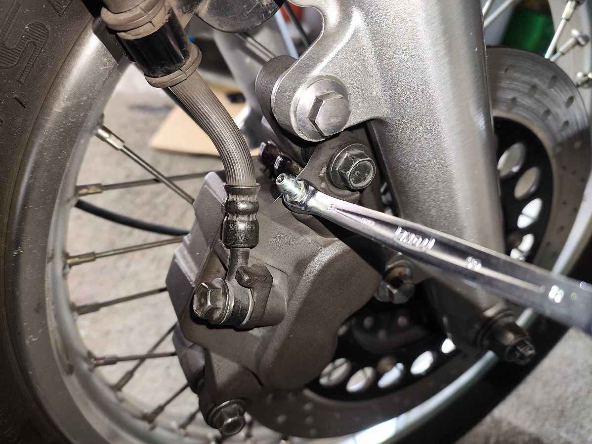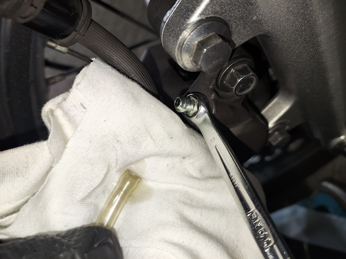 エア抜き用のホースとレンチ(8mm)を取り外す