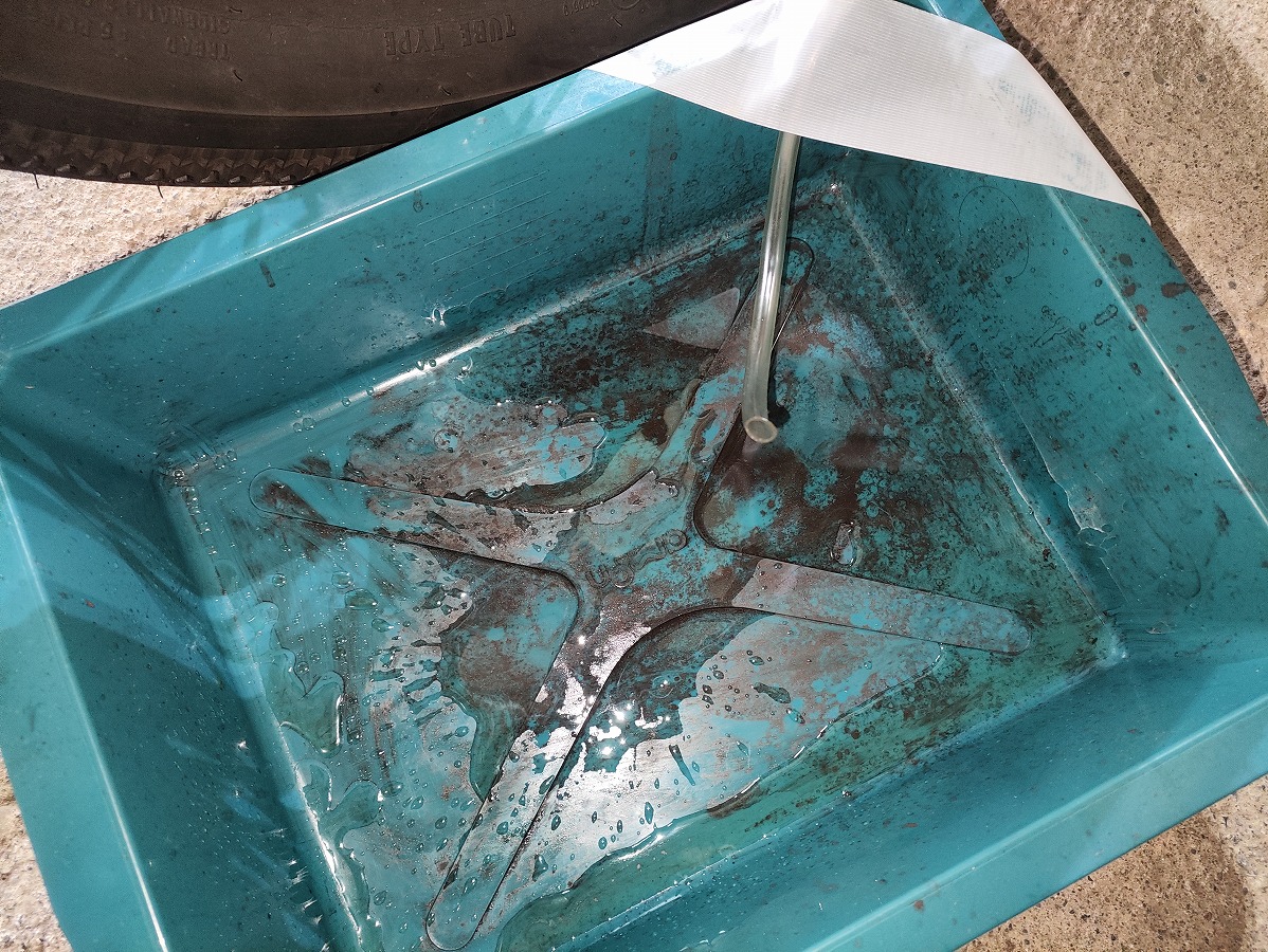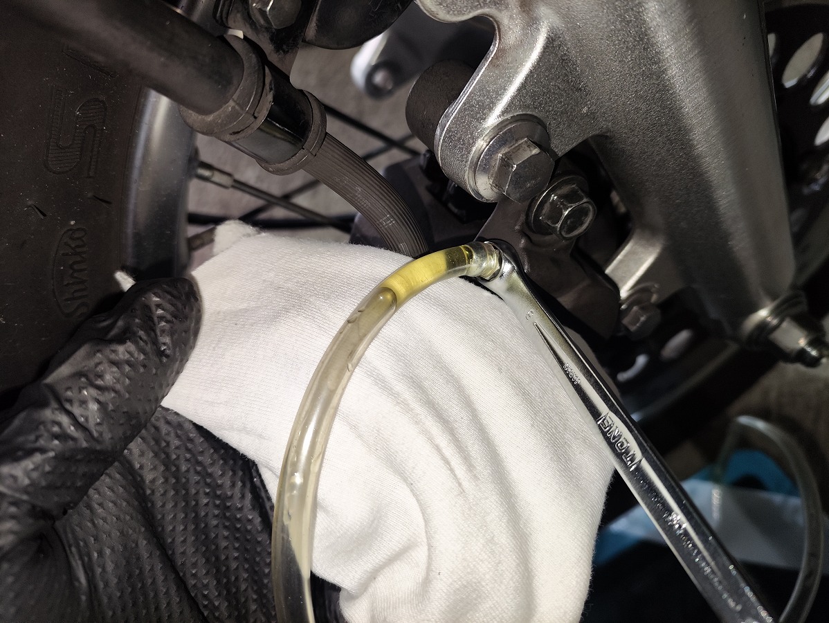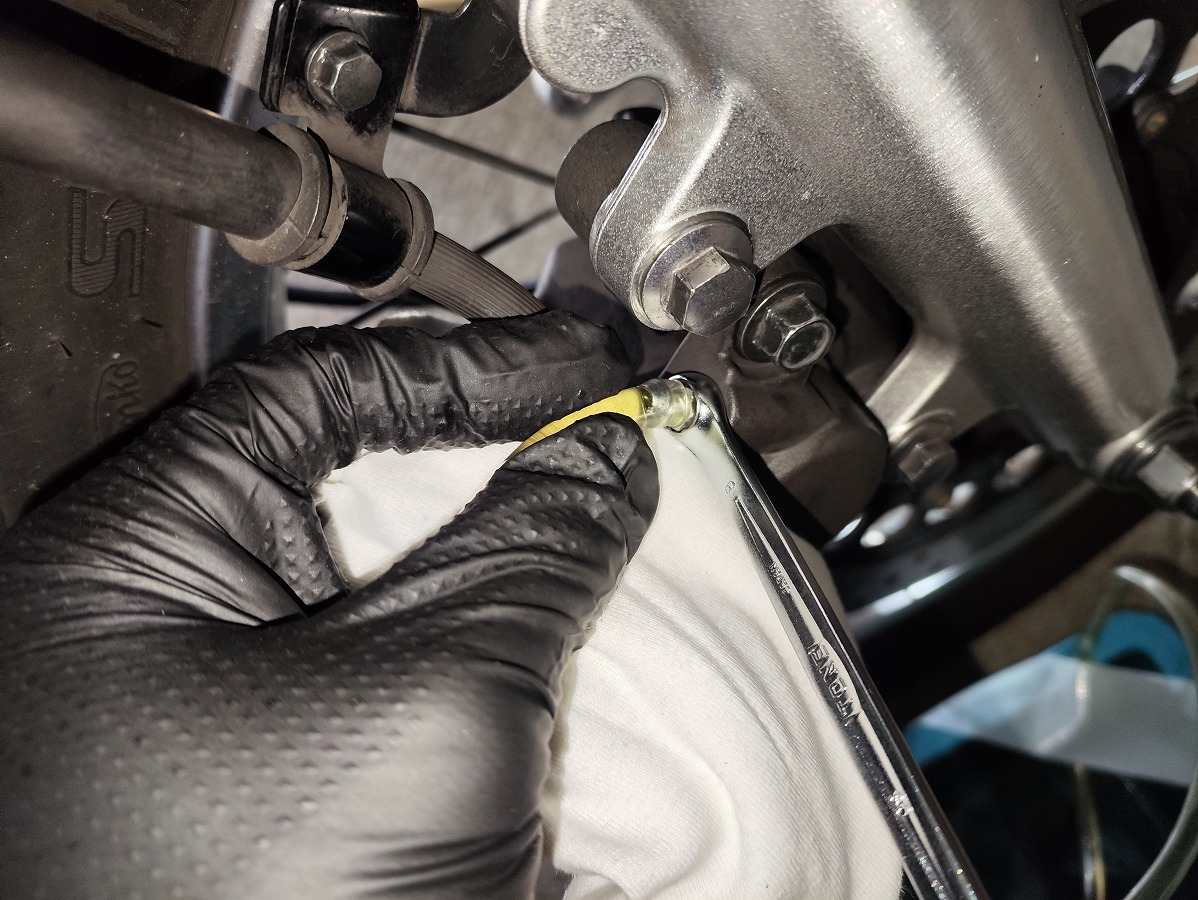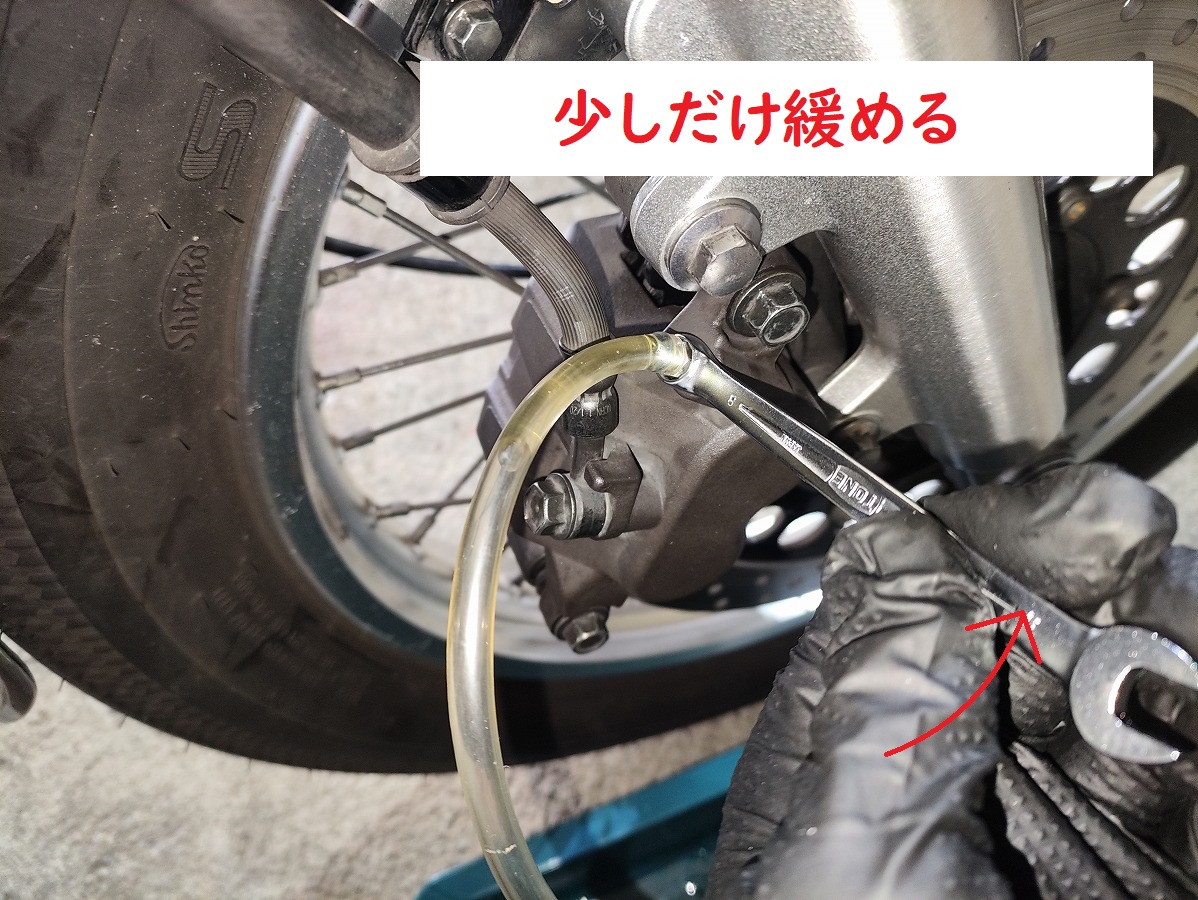エア抜き用のホースとレンチ(8mm)を取り外す