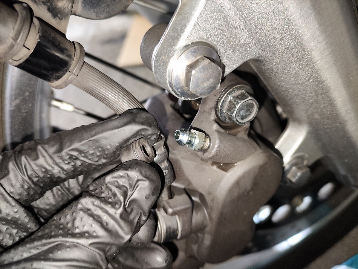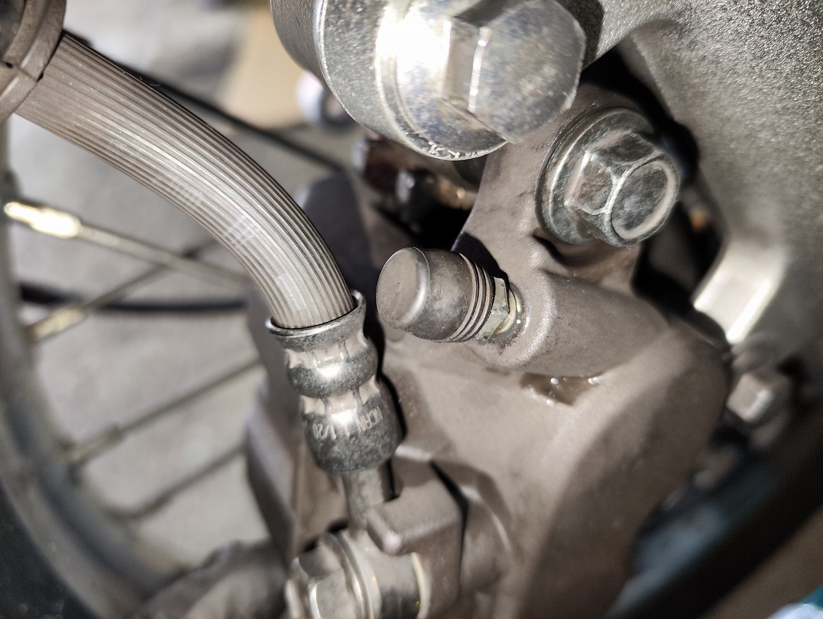- ブレーキキャリパーのブリーダーキャップを取り外し、紛失しないよう保管