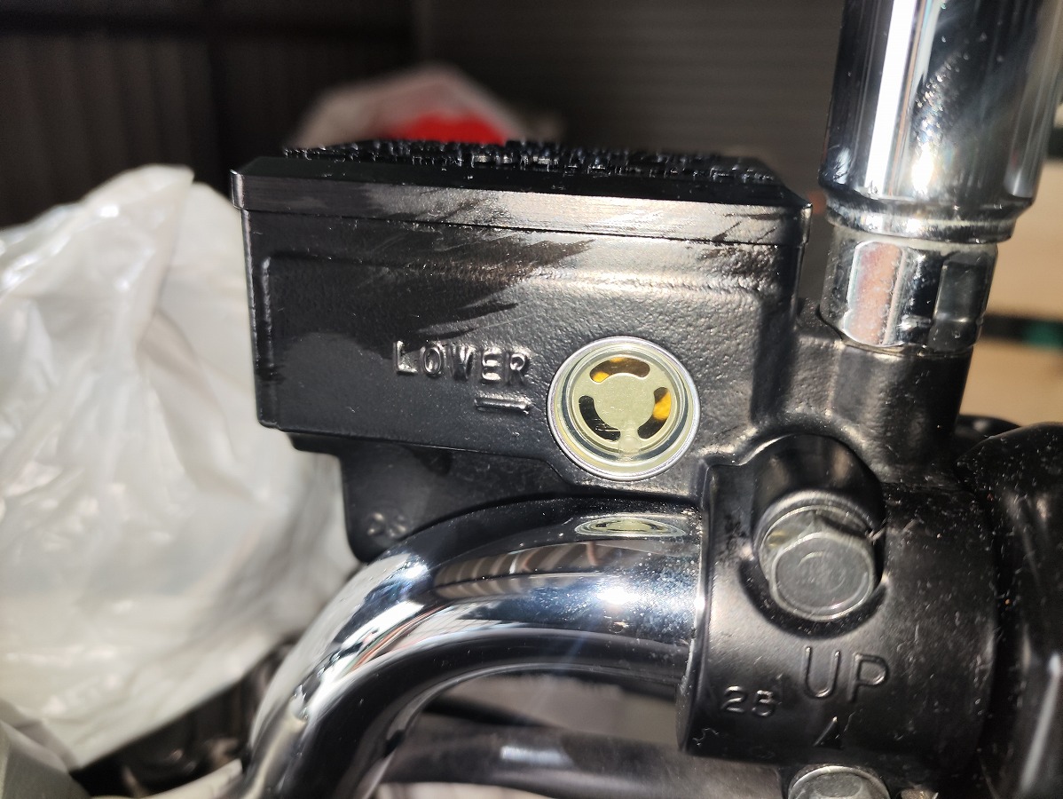 - ブリーザータンクのキャップが水平になるように、ハンドルを少し左に切ると良い