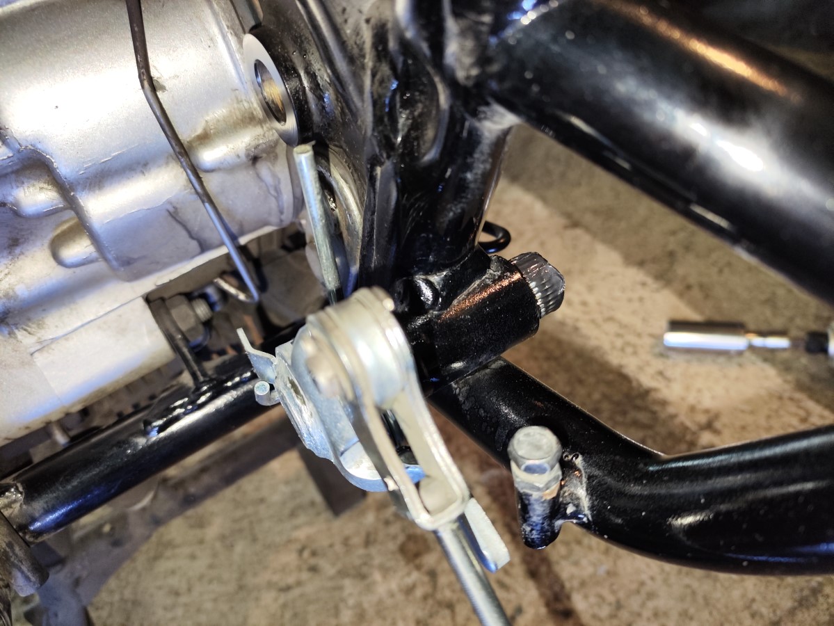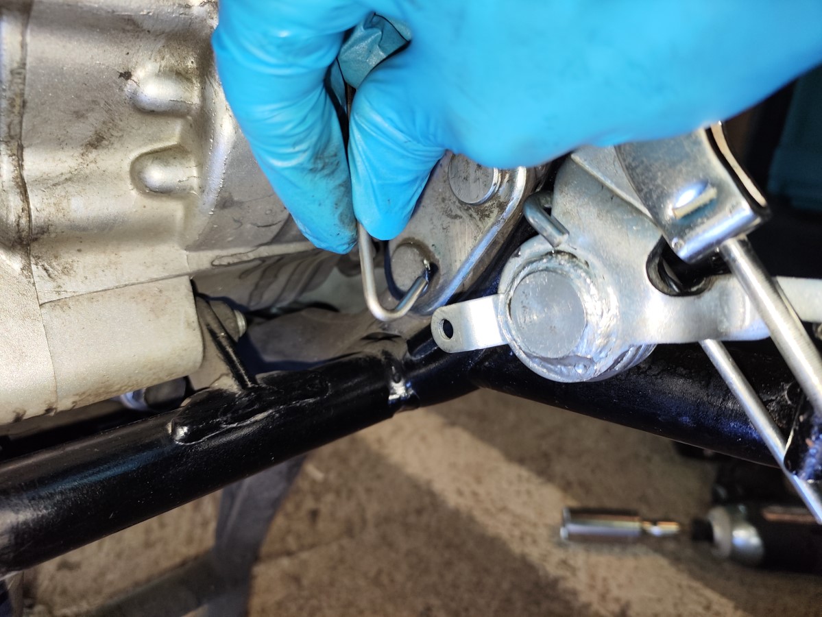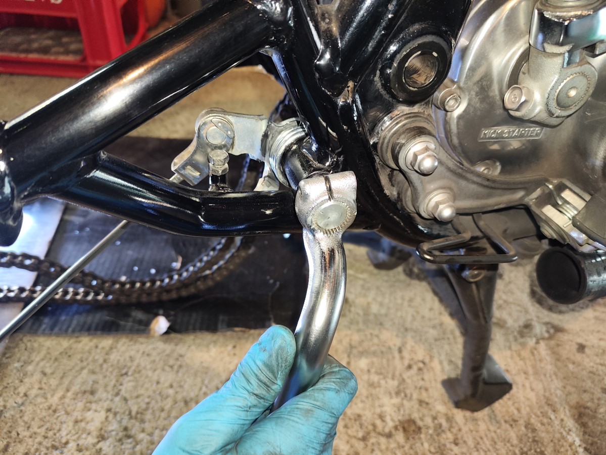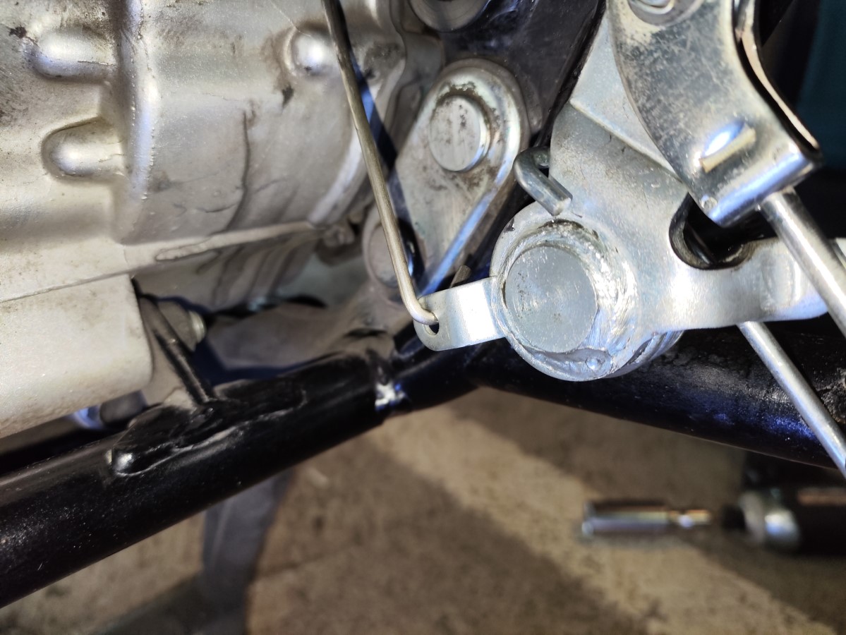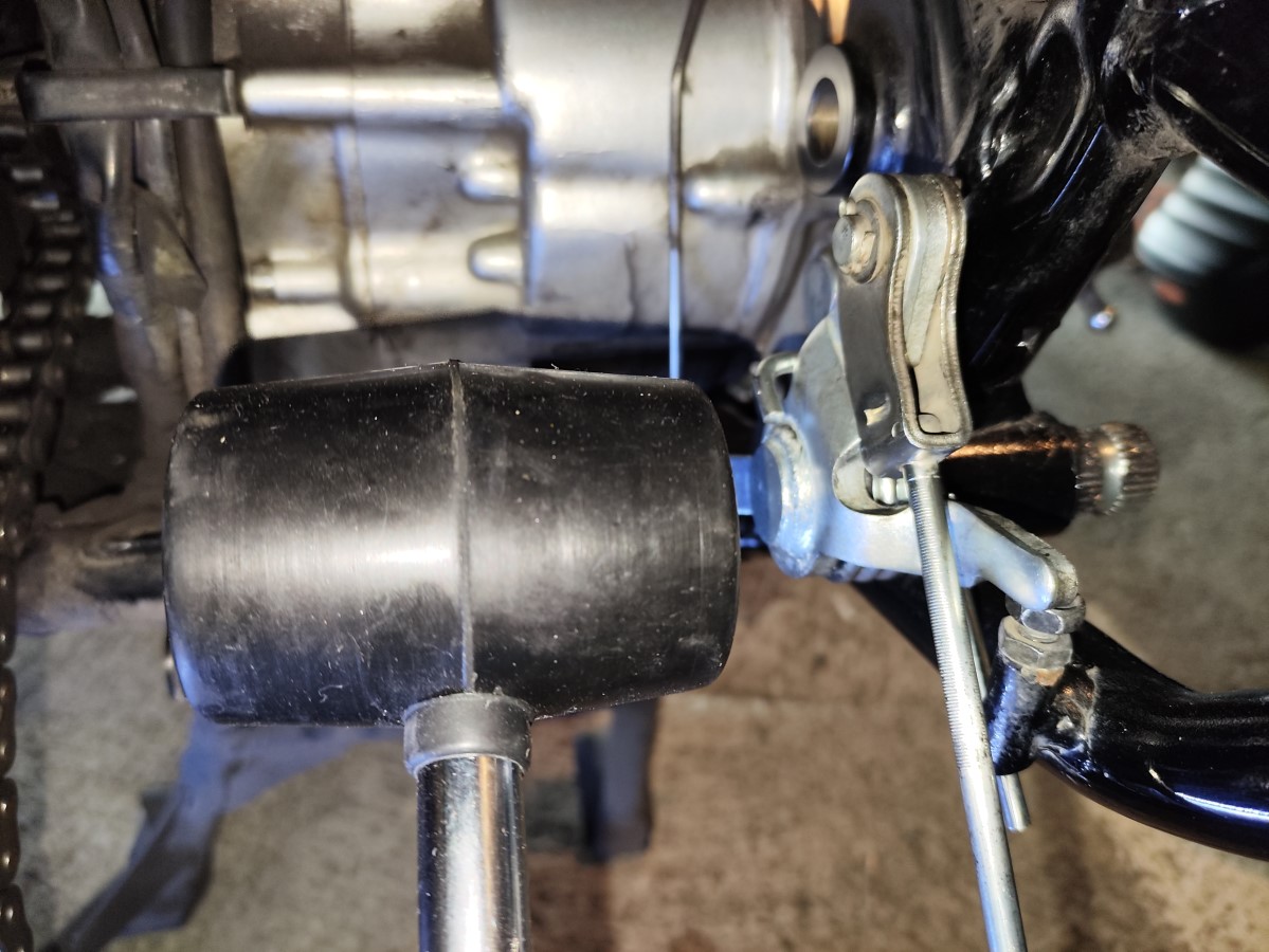この作業は見た目以上にアクセスが難しく、リアホイールやスイングアームを取り外す必要があるため、分解の手間がかかります。その分、整備のついでにブレーキペダルのピボット部や、普段触れない部分を同時にメンテナンスしておくと安心です。