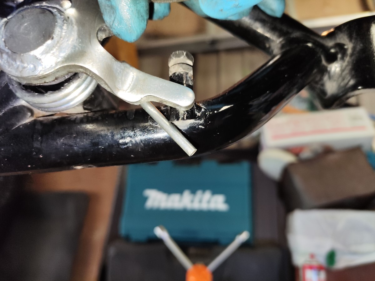 - ストッパー反対側の穴に、ブレーキスイッチのフックをしっかり奥まで引っかけます。