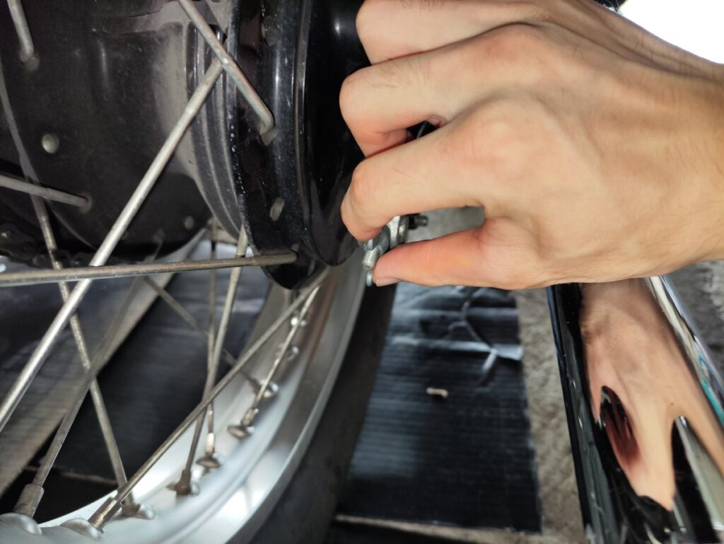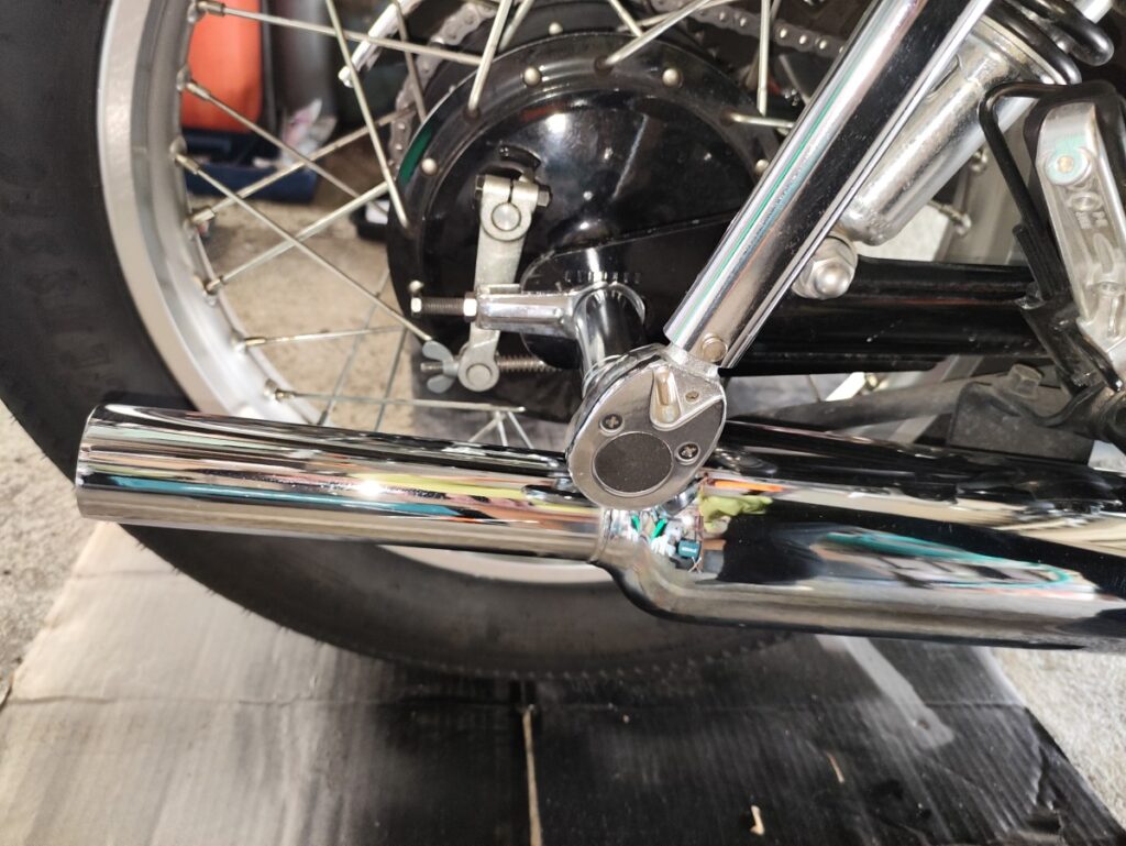 ここからはSR400のチェーンを実際に交換する手順を解説します。作業は後輪を浮かせて行うため、必ず平坦で安定した場所を選び、安全を確保したうえで進めましょう。