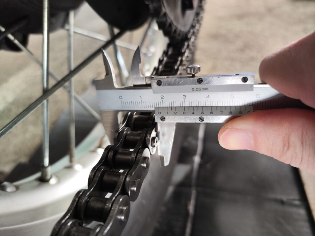 - メモリを対象にした後、再度チェーンのたわみ量を確認。