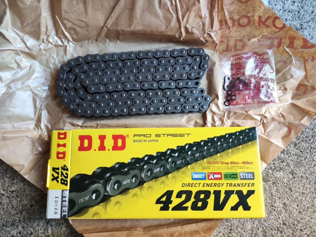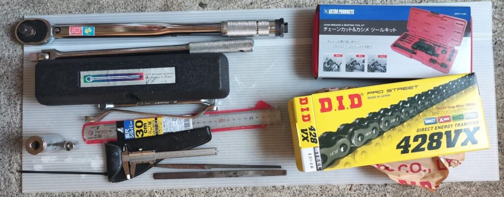 - 新しいチェーン(SR400純正:428サイズ・130リンクのシールチェーン)