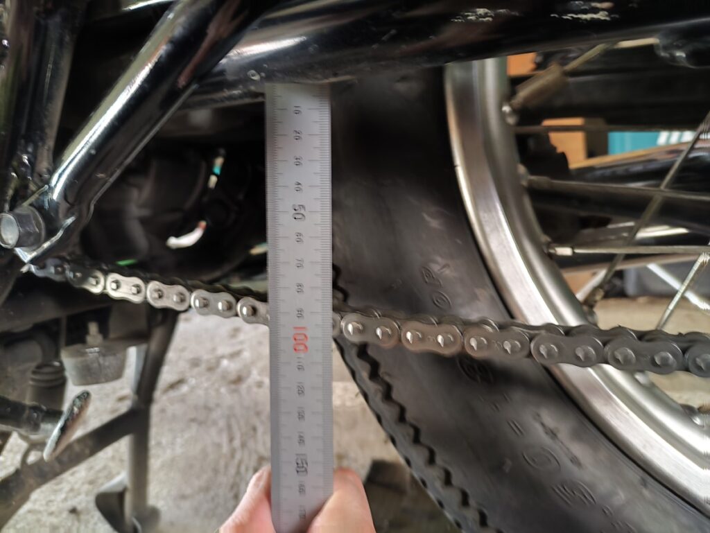 チェーンのたわみが規定値(30㎜~40㎜)よりも大きくなる程度でOKです。