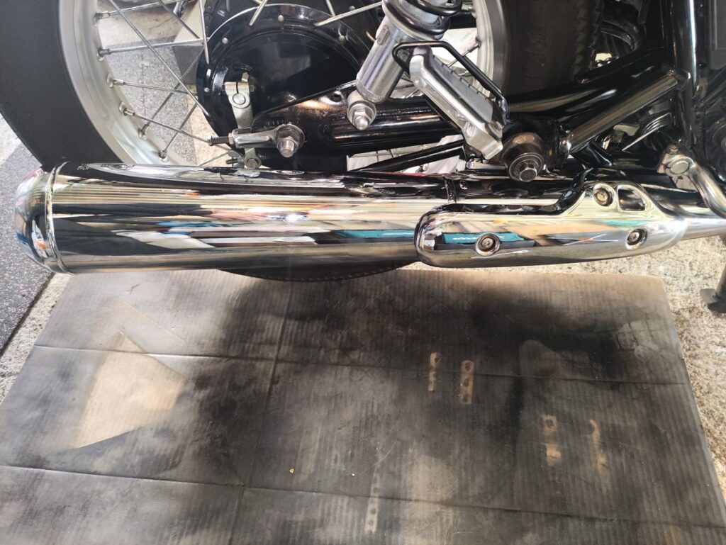 - 純正マフラーはアクスルナット付近のクリアランスが狭く、工具が干渉して傷がつく恐れあり。