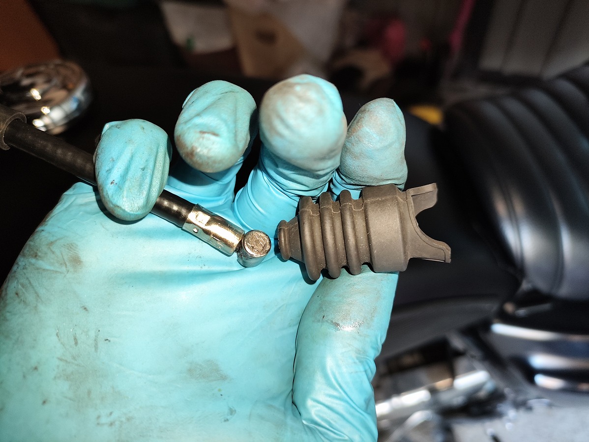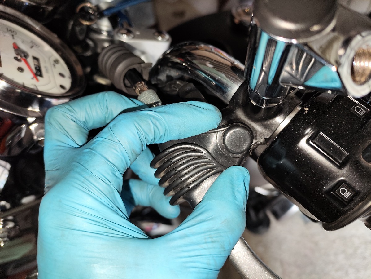 - ワイヤー側のゴムブーツを軽く広げてメーター側へスライド