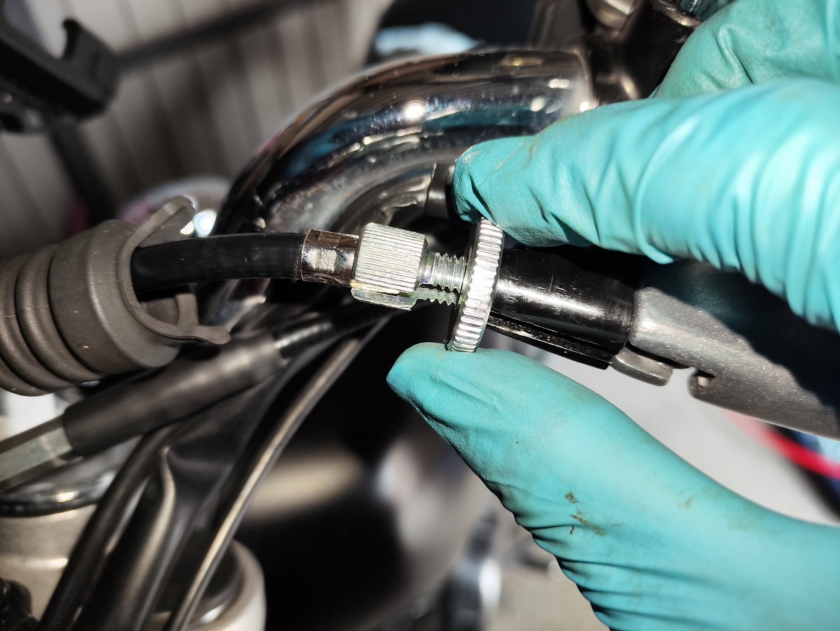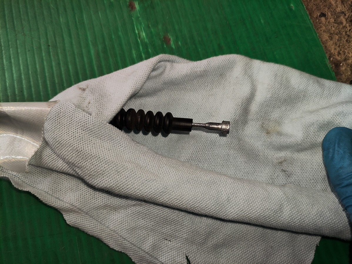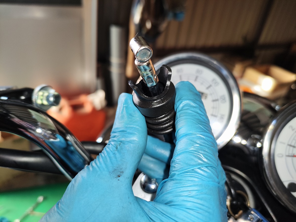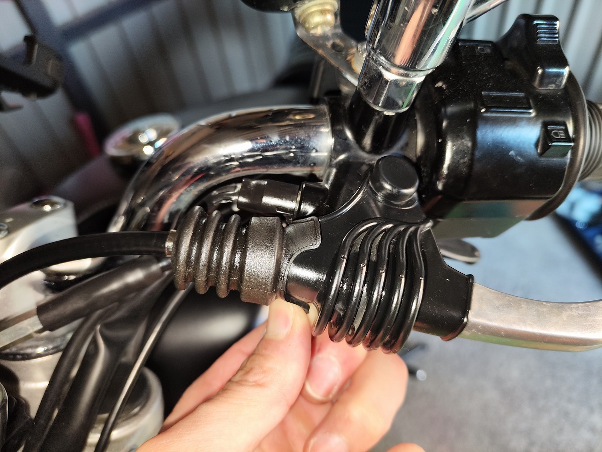 (規定トルクが分からなかったので、ブレーキレバーの締め付けトルクを参考にしました。一般的な締め付けでOKだと思います。) - ゴムカバーを途中まで通しておく