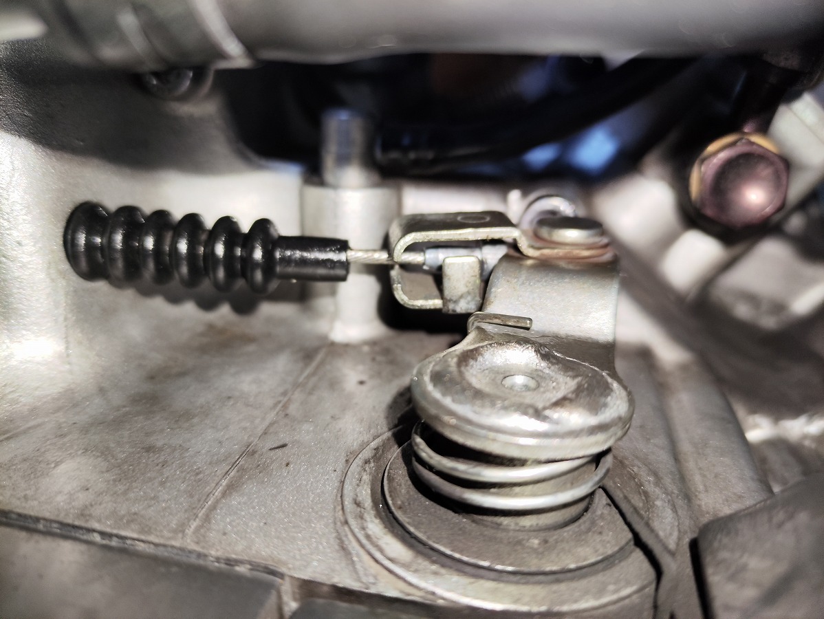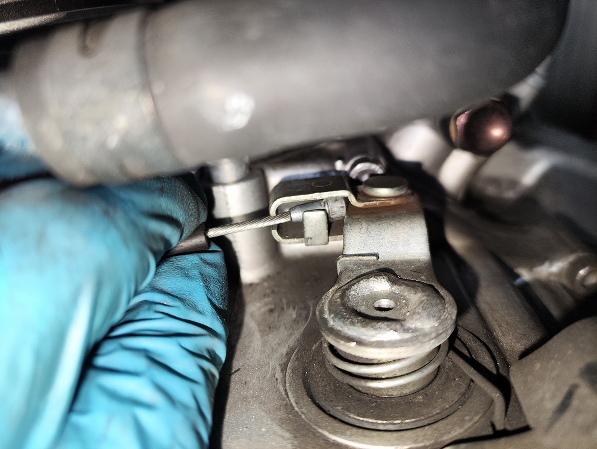 6. エンジン側(プッシュレバー側)のクラッチワイヤーを外す