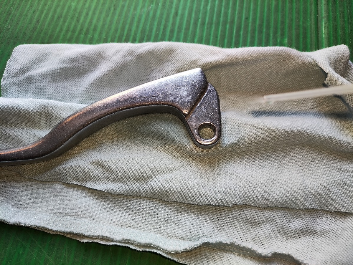 - ハンドル側のホールド部も清掃。ウエスで汚れをしっかり落とす