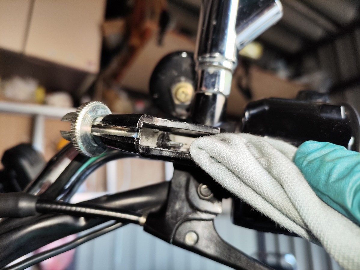 - レバー側のゴムカバーも外側へスライドさせておく。