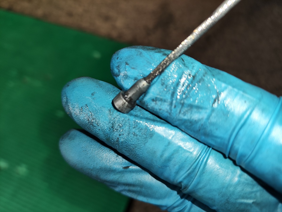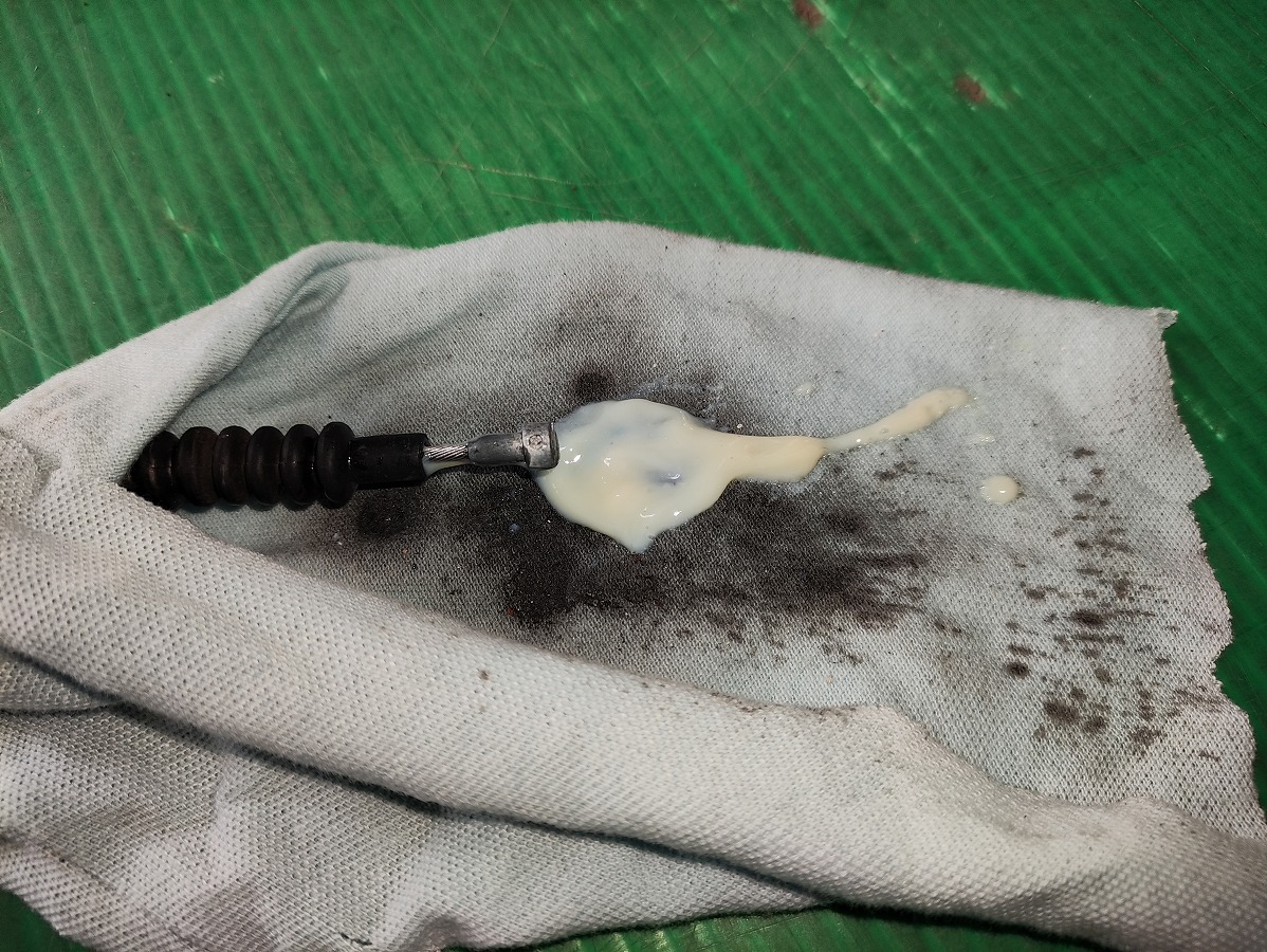 - 反対側からグリスが出てきたら、ワイヤーインジェクターとウエスを取り外します