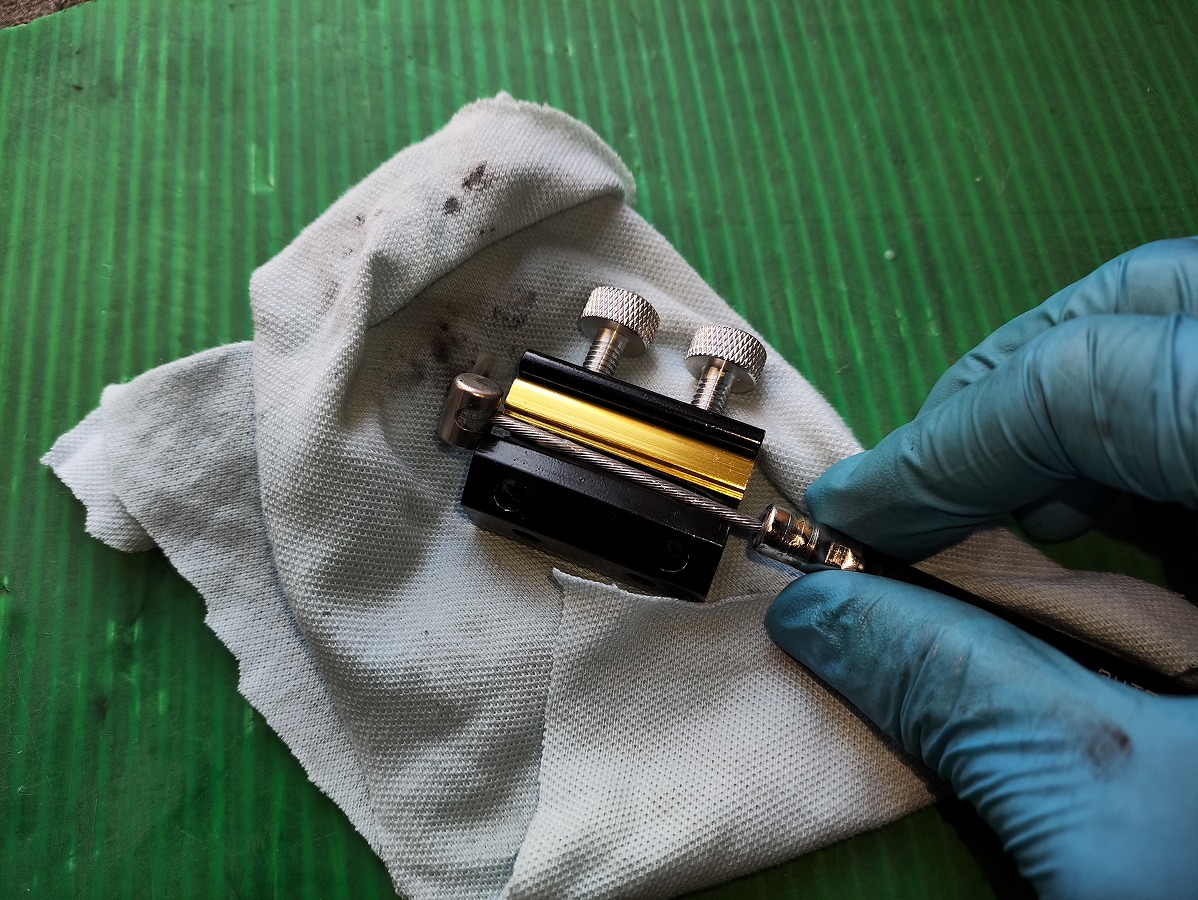 これでワイヤーケーブルのグリスアップは完了です。車体に取り付けていきましょう。