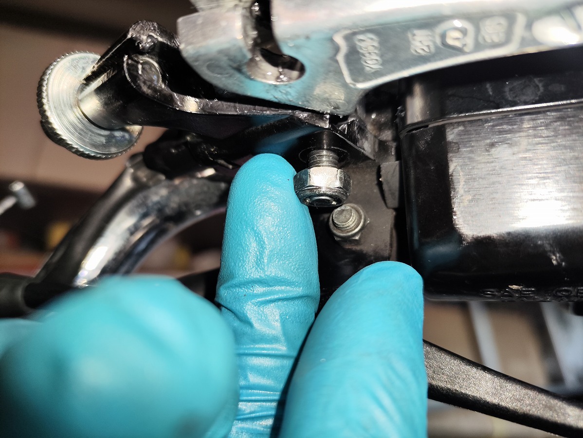 - レバー・アジャスター・ロックナットの溝が一直線になるように再度調整する
