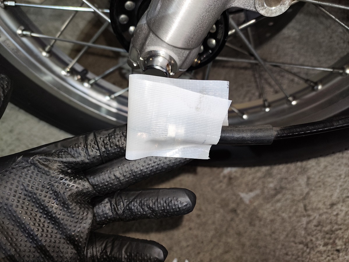 - ケーブルを外すと、メーターチューブ内の インナーケーブルが落ちてくる場合があるため、インナーケーブルが抜け落ちないようテープで仮固定しておく