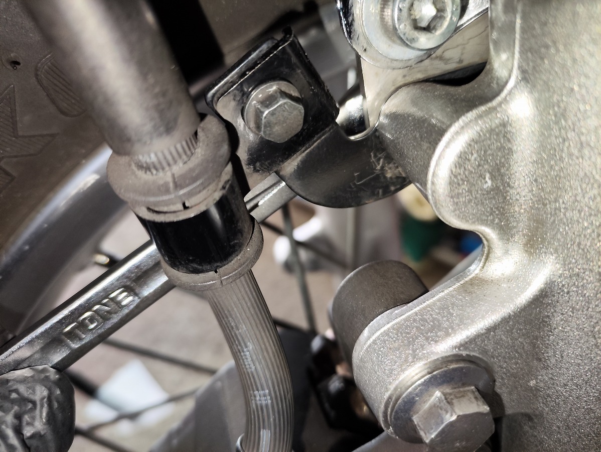 - ブレーキホースのブラケットが正しく共締めされているか