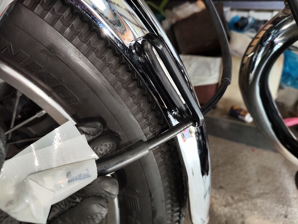 - フロントフェンダーのケーブルホルダーにスピードメーターケーブルを通す