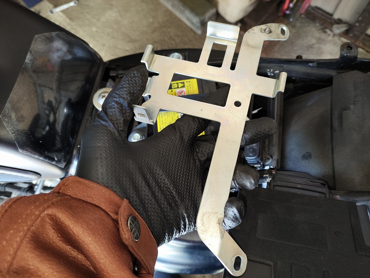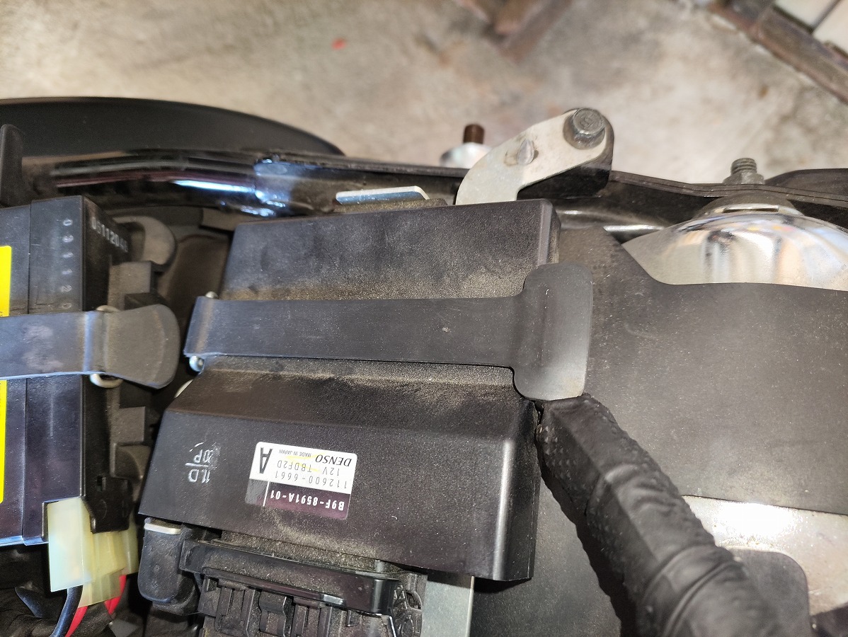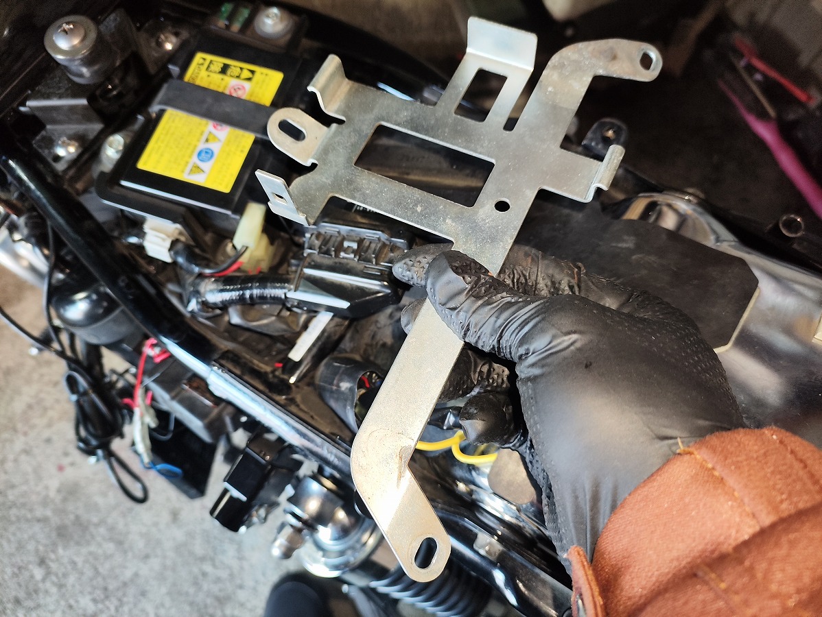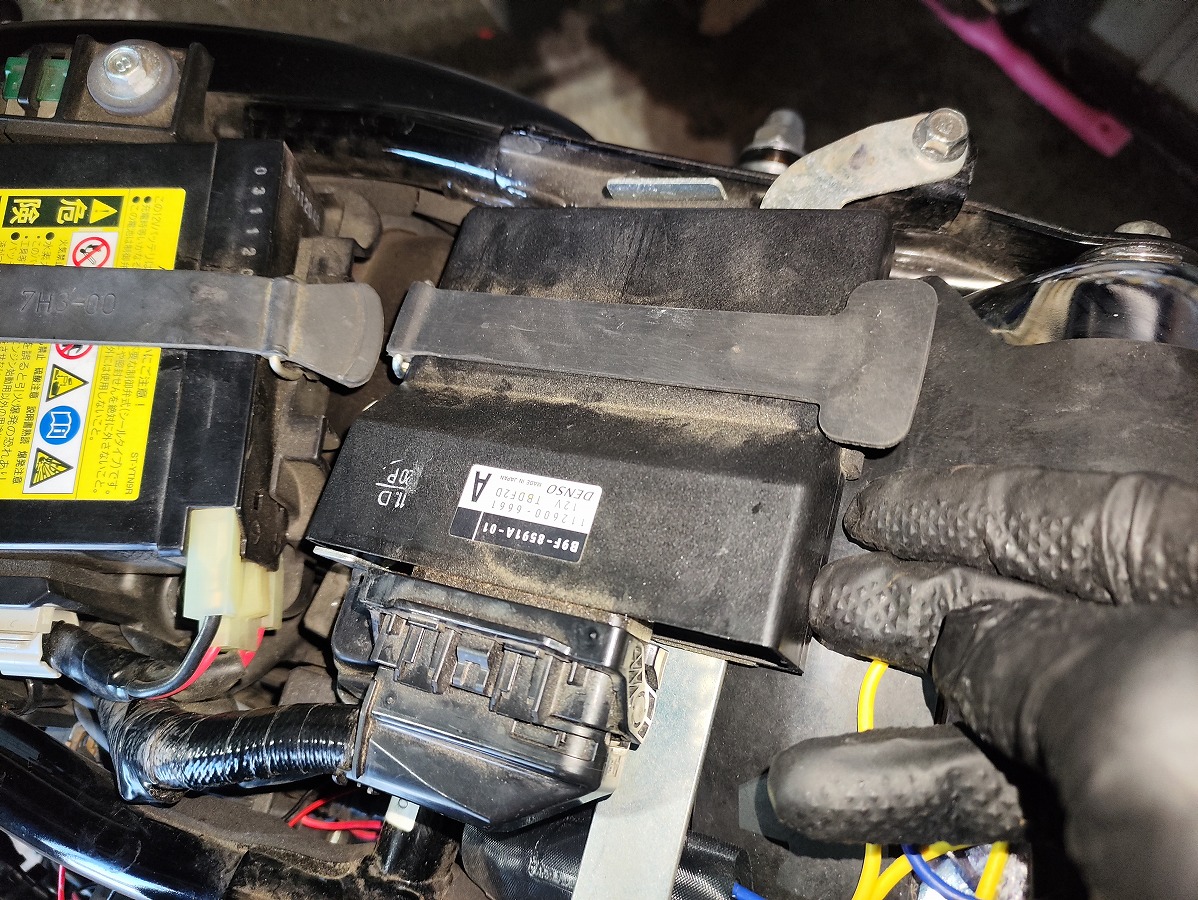 テールランプ端子へアクセスするため、ECUのブラケットを取り外す