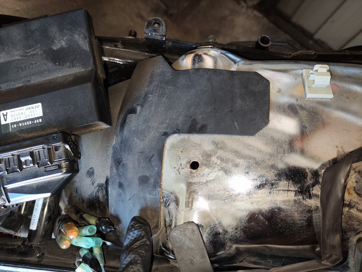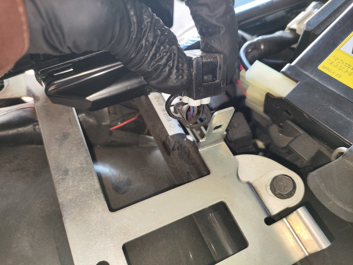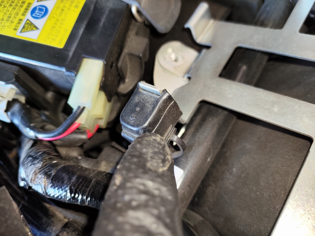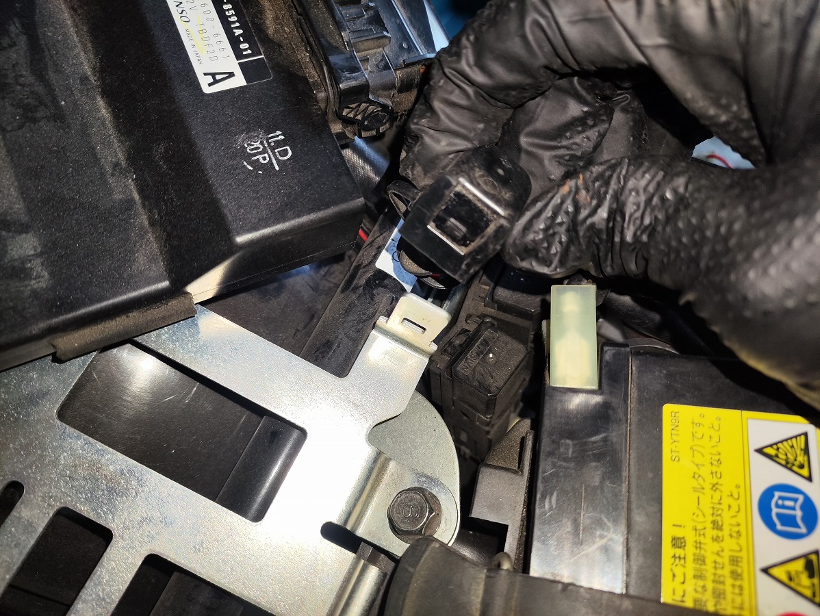 - ECUをずらし、ブラケットに取りついている、カプラーの保護カバーをカバーごと取り外す
