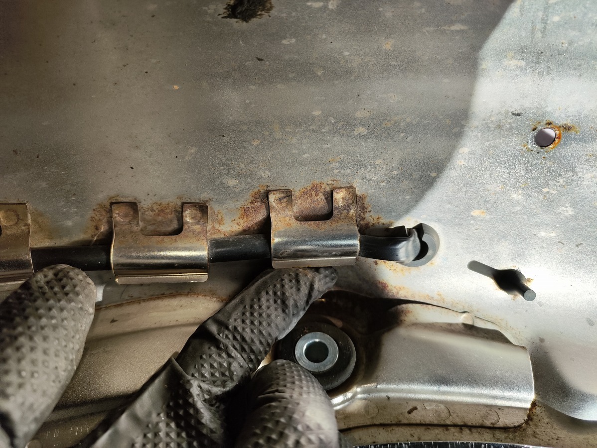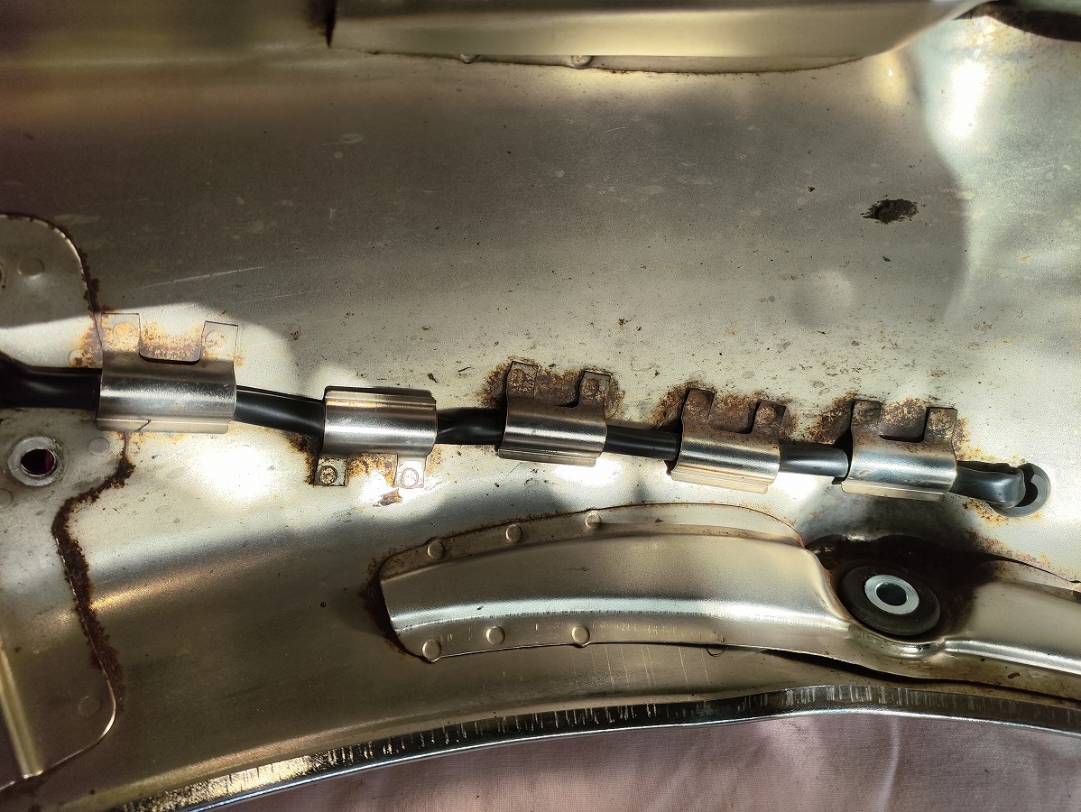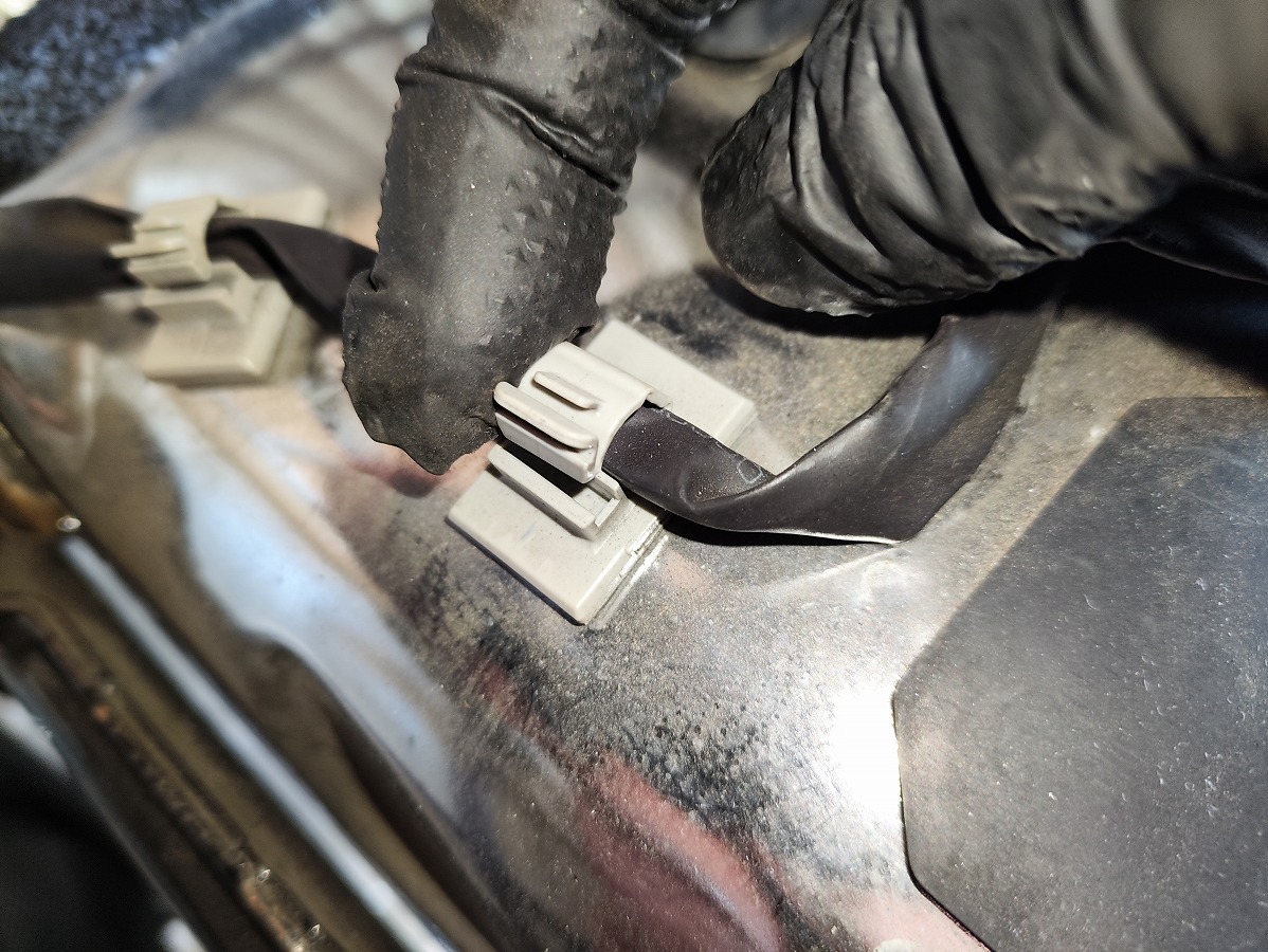 - フェンダーにグロメットを忘れずに取付け、配線を元通りに取り回し、爪でしっかり固定