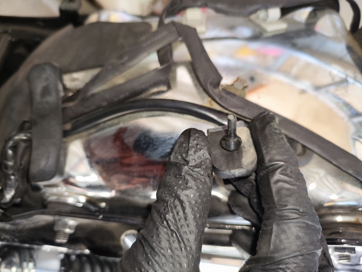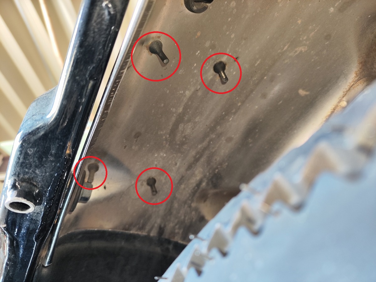 - ボルトを取り外したら、フェンダーをフレームから後方に引き抜く