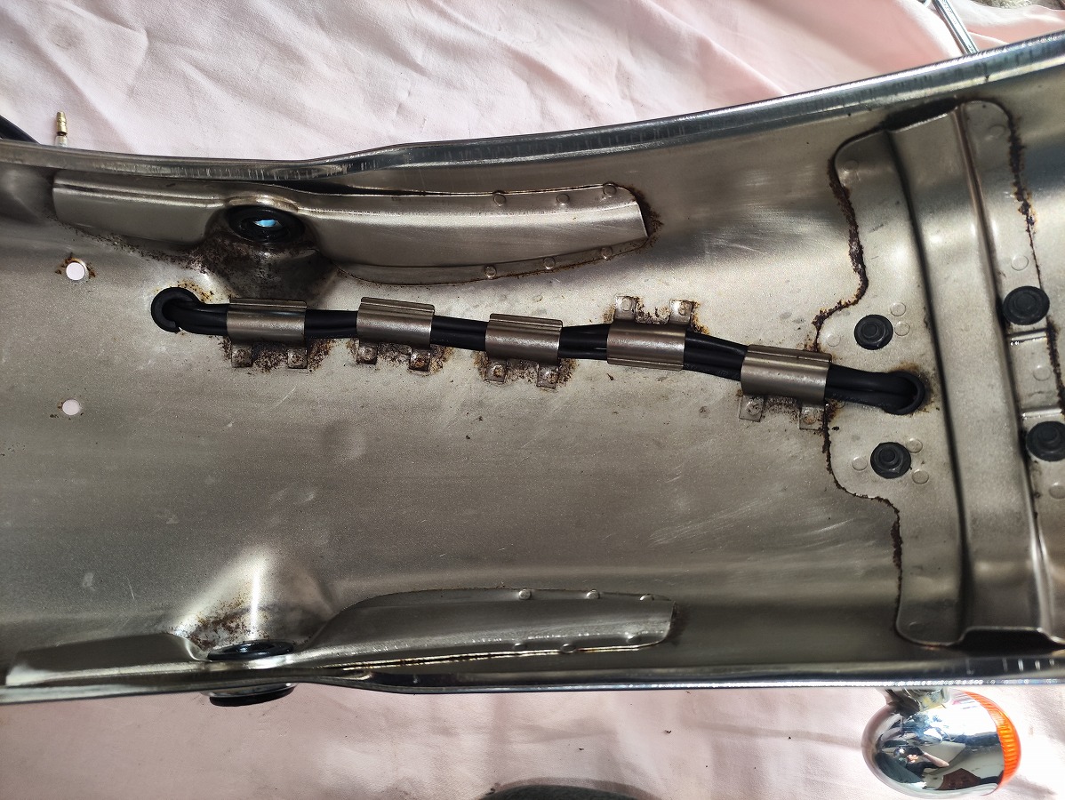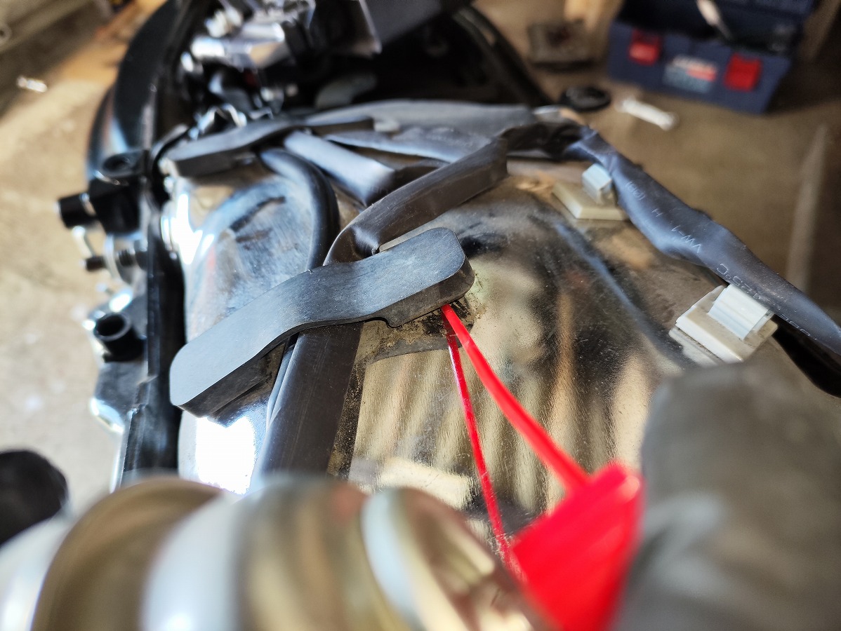 - 事前に撮影した写真を確認しながら、テールランプとウインカーの配線を元通りの取り回しにする