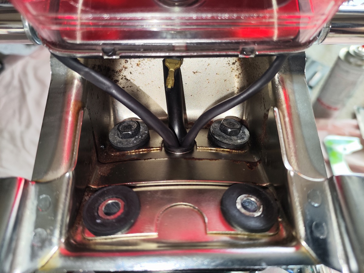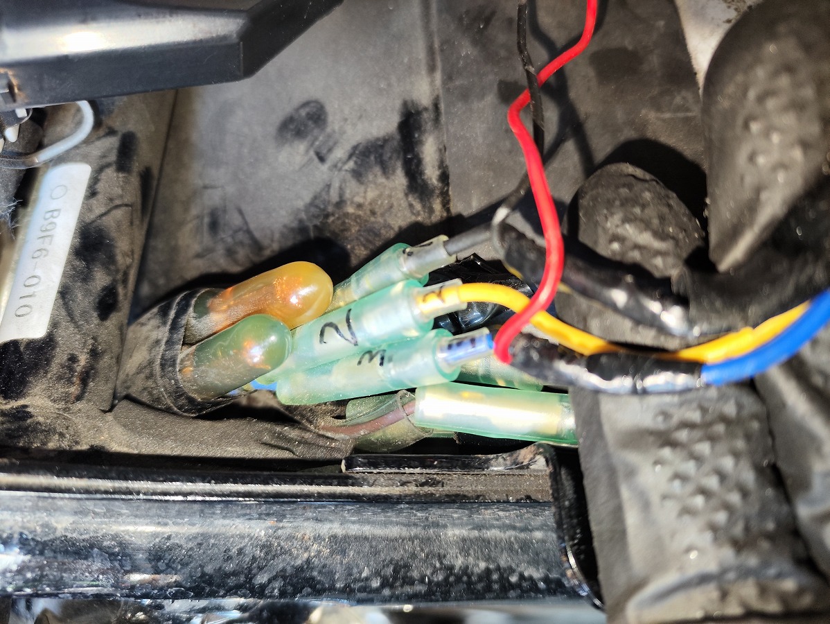 - テールランプのギボシ端子。黒・黄色青計3本を元通り接続