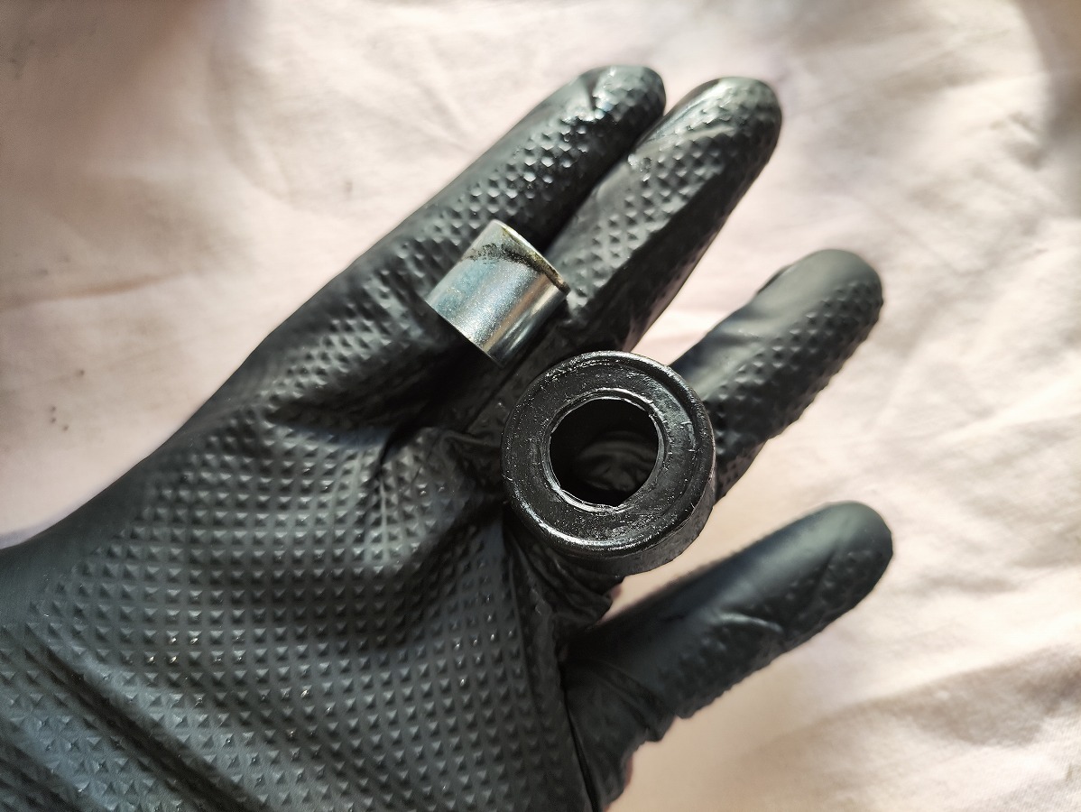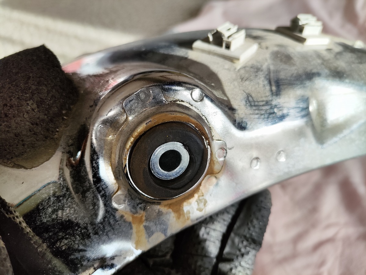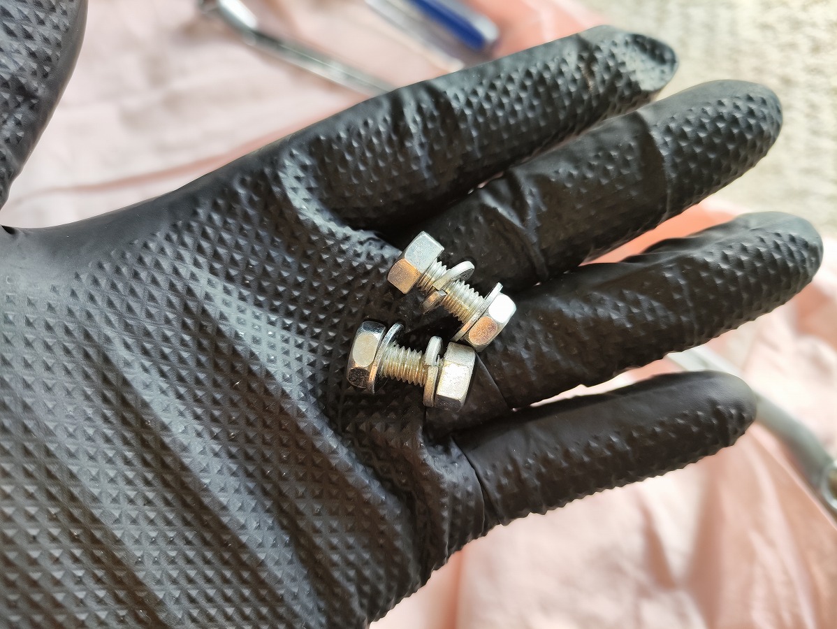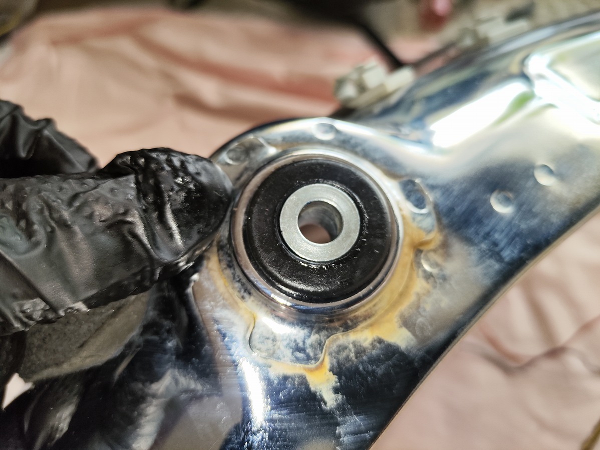 裏側からワッシャーとナットで締まっているので、供回りしないよう押さえながら緩めて取り外す。