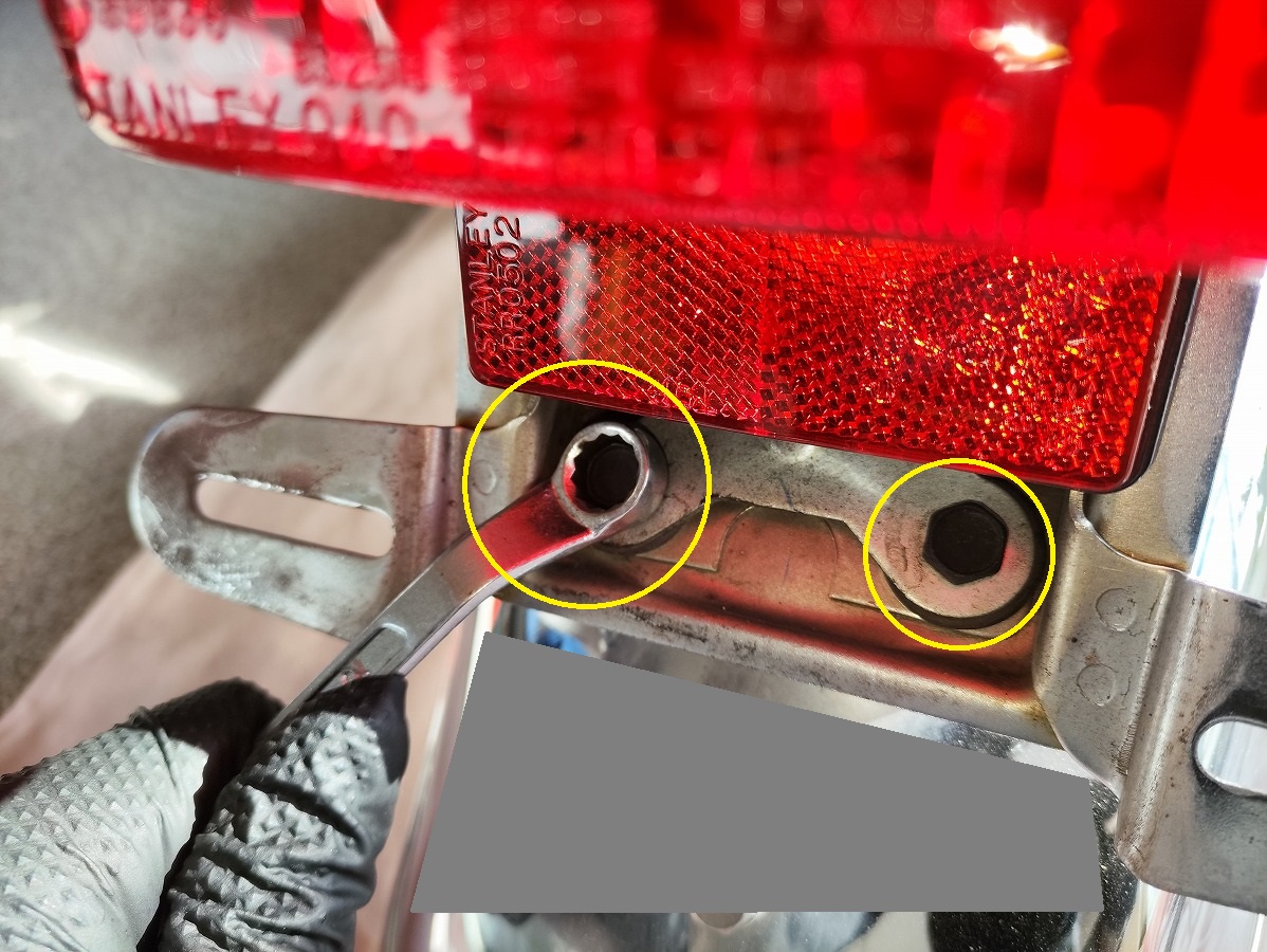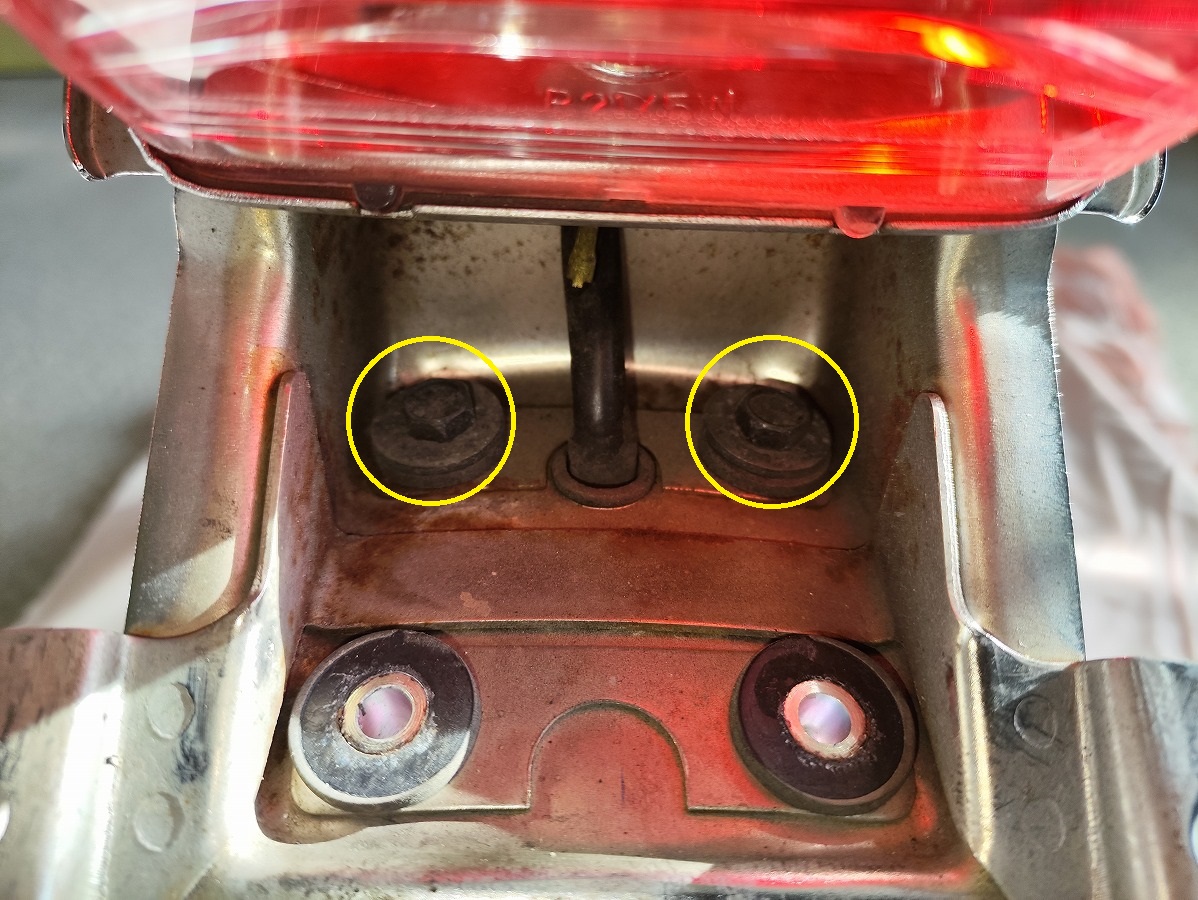 - テールランプユニットの固定用ボルトとナット(10mm)2本を取り外す