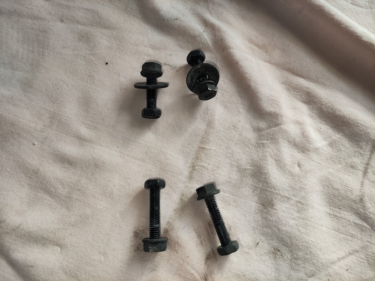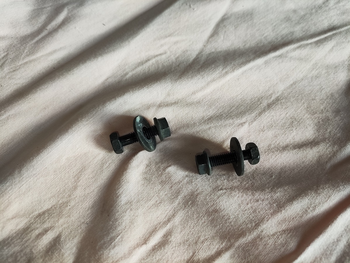 - ワッシャーを忘れずにセットし、奥側の取付ボルトとナット(10mm)を2本を締め付ける