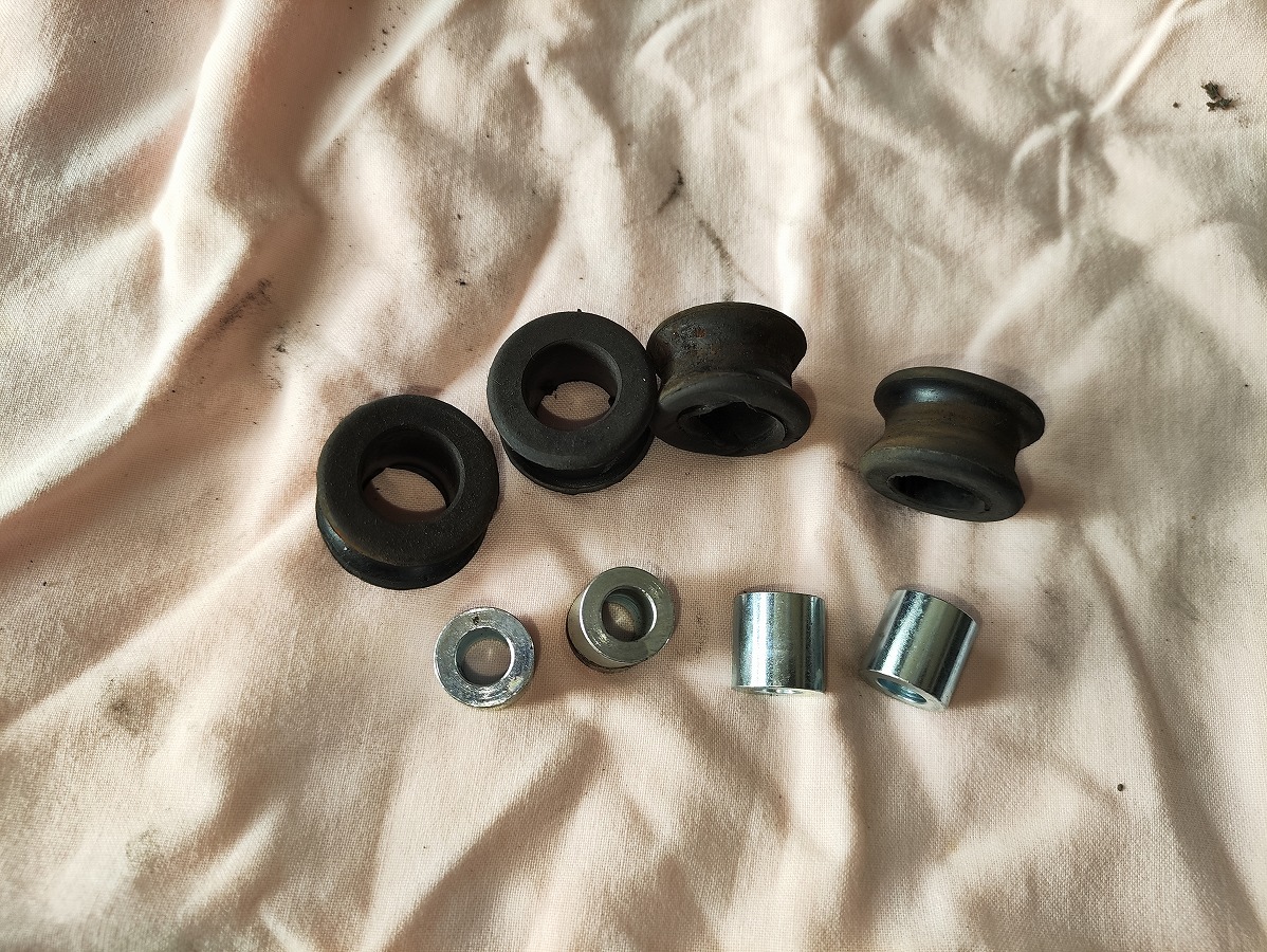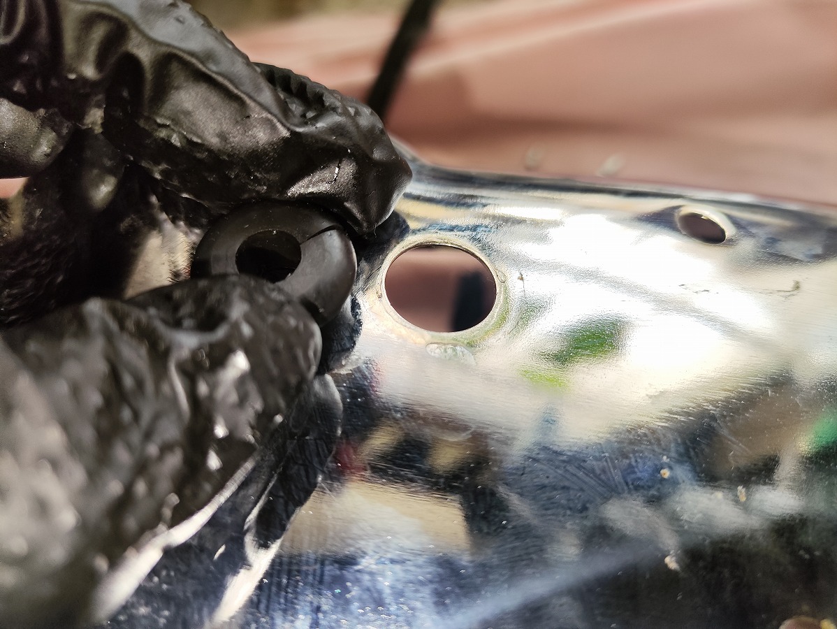 - フェンダー取付穴4か所のカラー・ゴムダンパーを取り外す