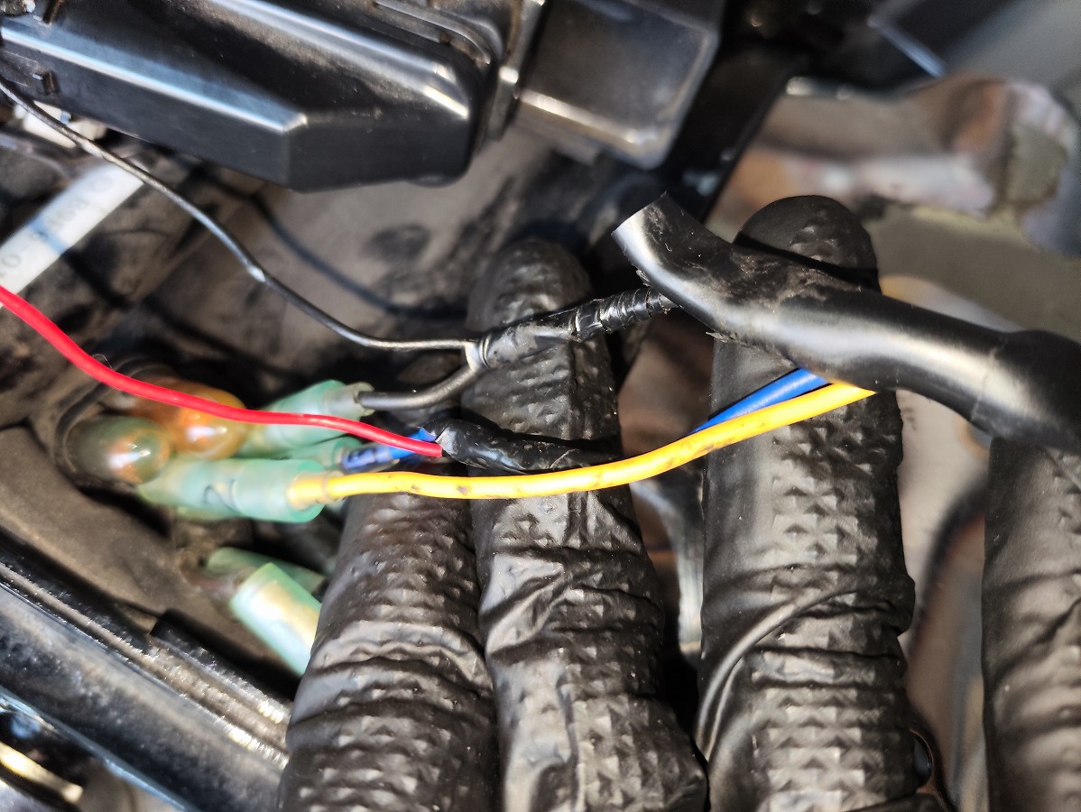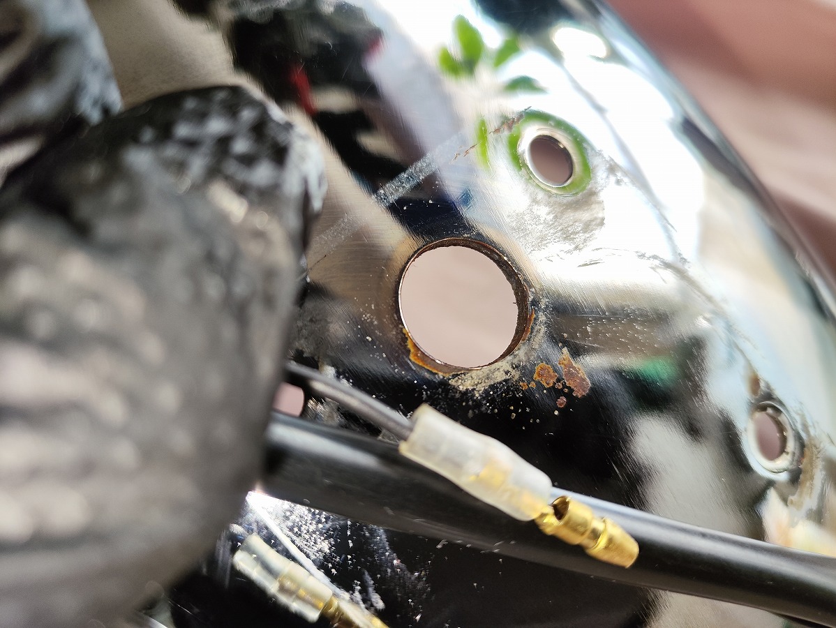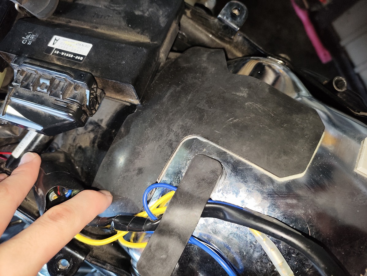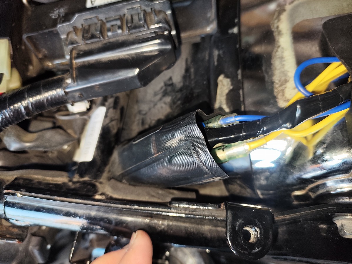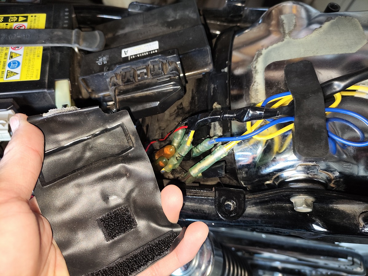 ※筆者はウインカーを移設しているため、画像にはウインカー配線も写っていますが、作業には関係ありません。