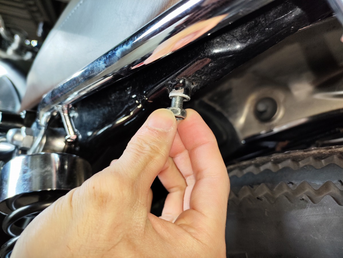 - 前側がしっかり固定されたのを確認したら、左右2本のボルトを取り付けます。