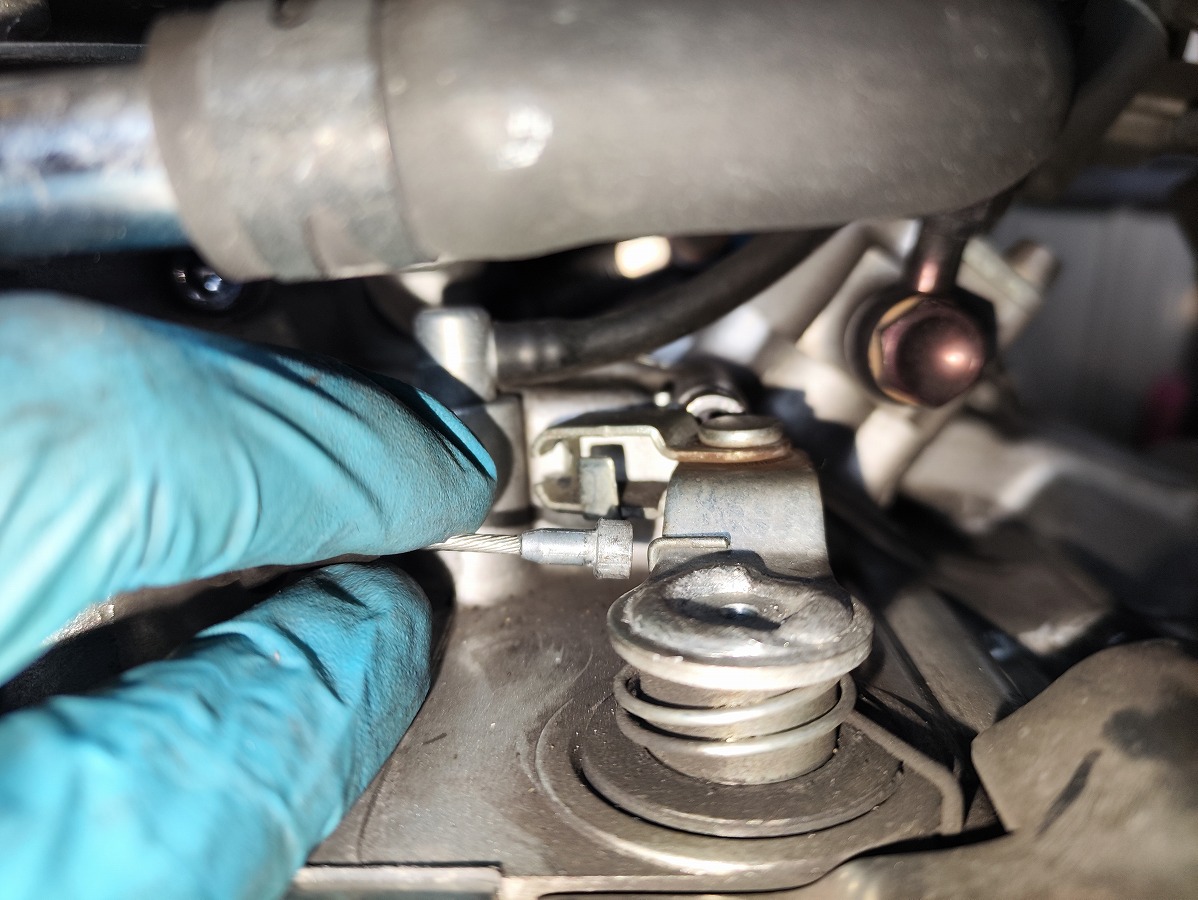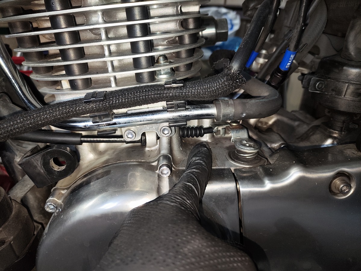 - ワイヤーケーブルへのアクセス性向上や傷防止のため、シート・燃料タンクは事前に取り外しておく。