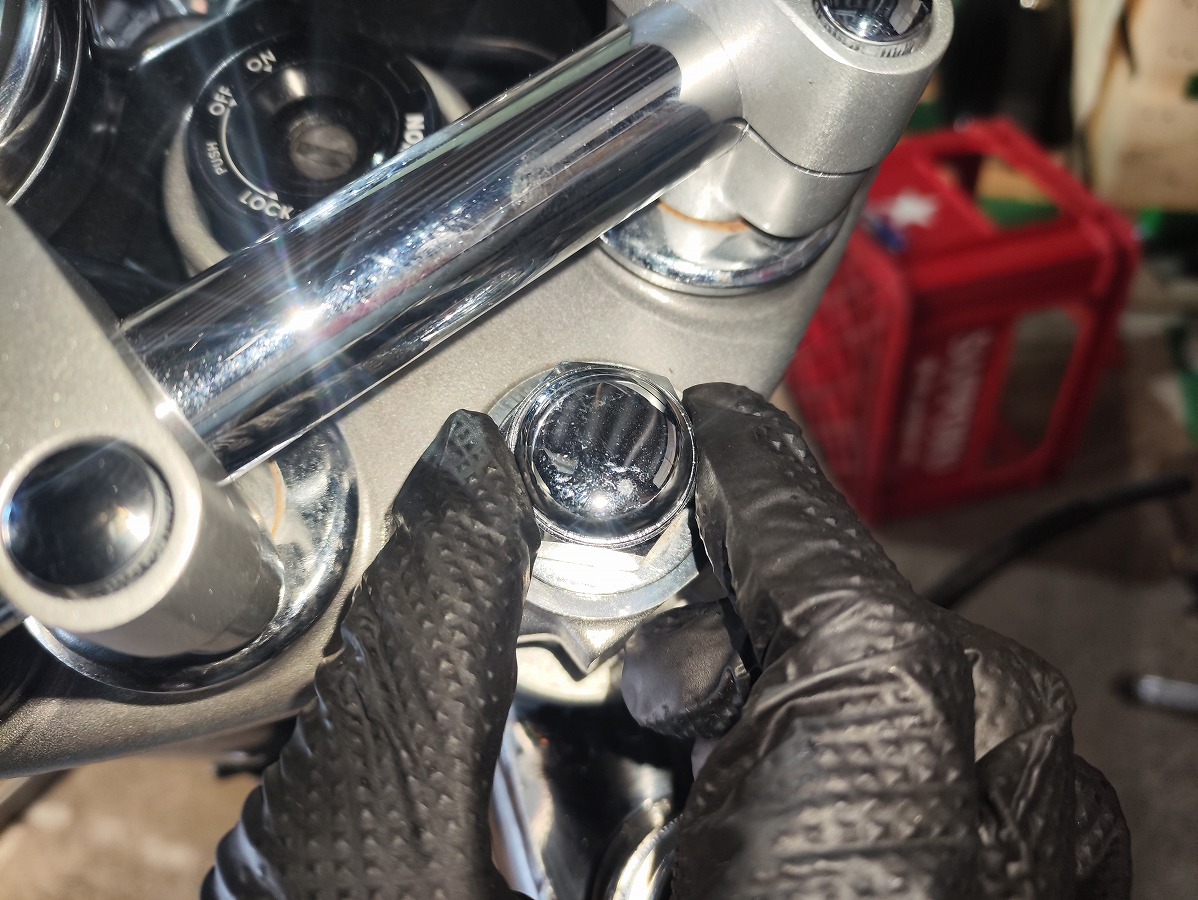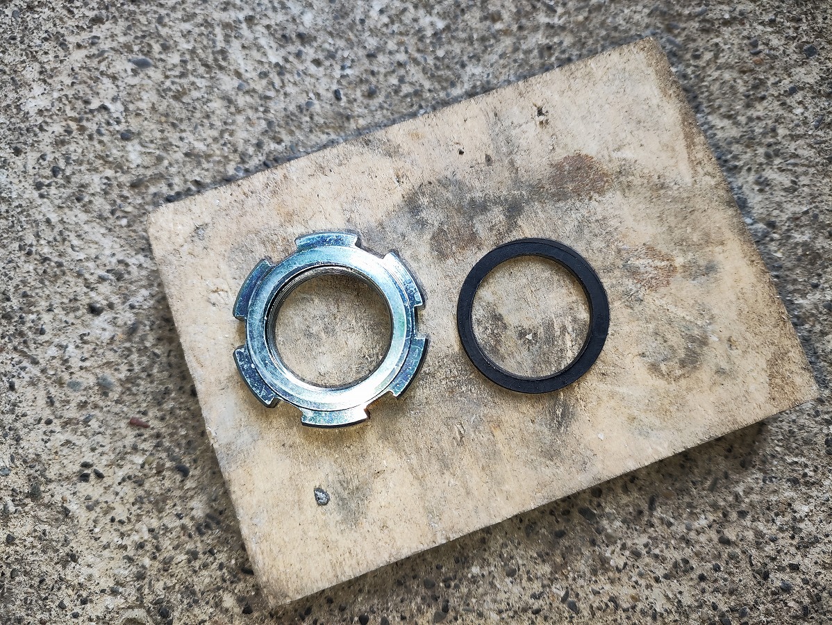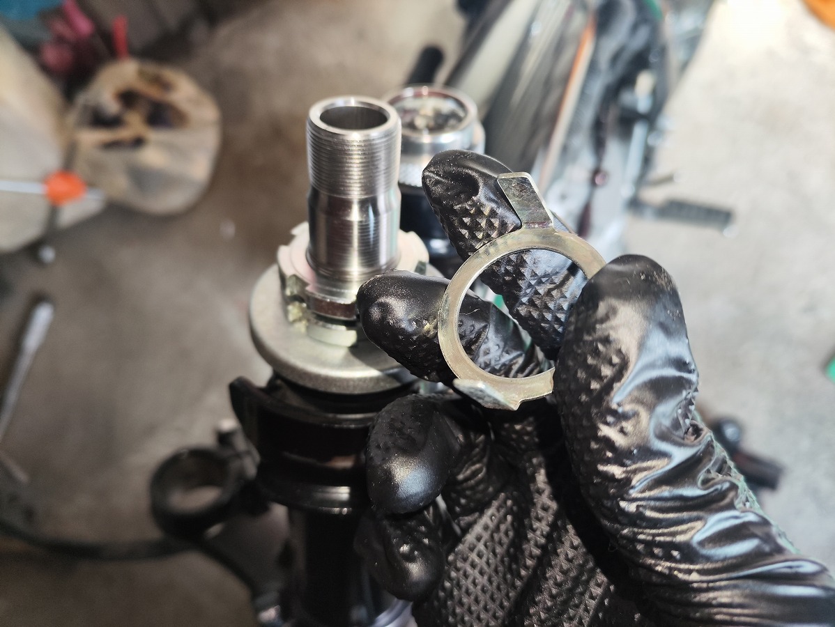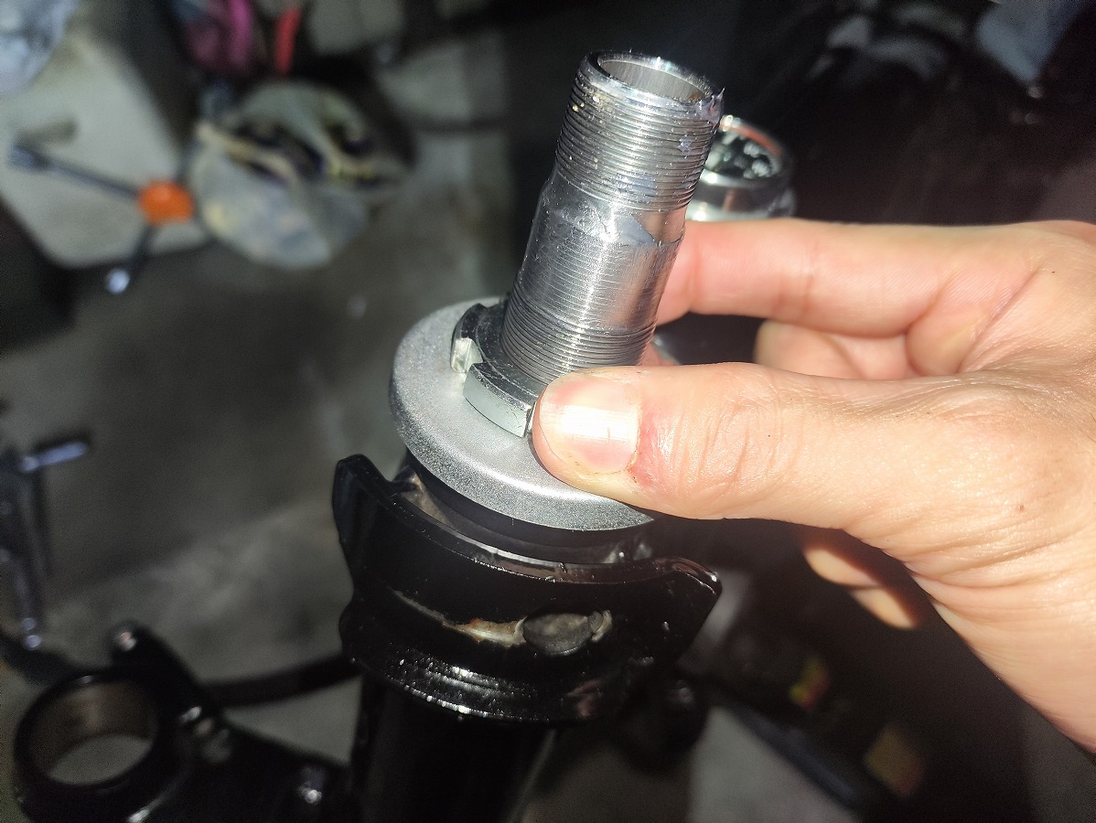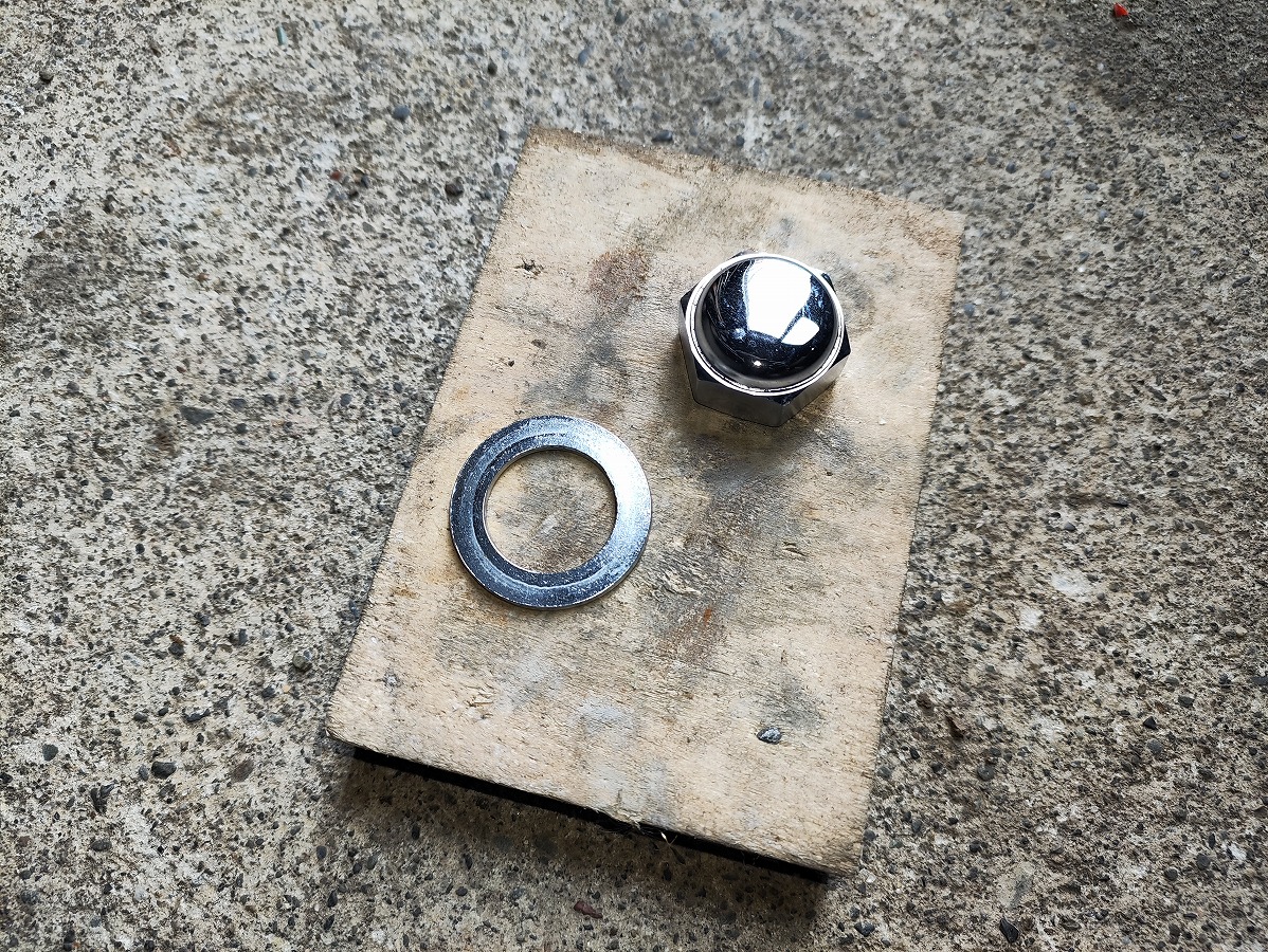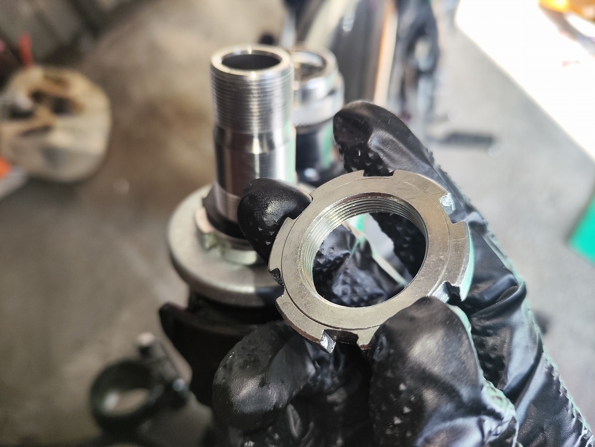 - ワッシャーを忘れずにセットし、ステムのキャップナット(27mm)を締め付け