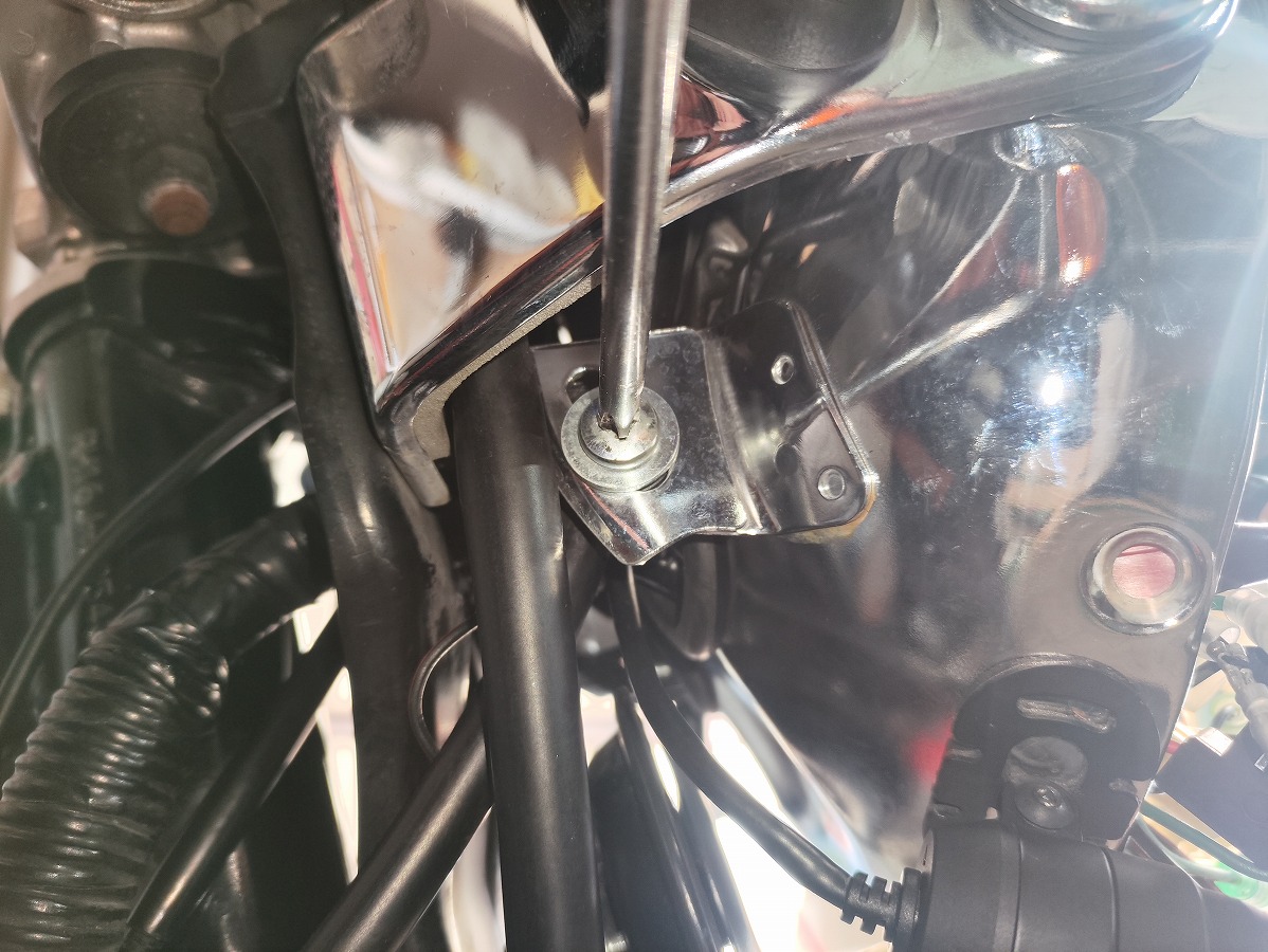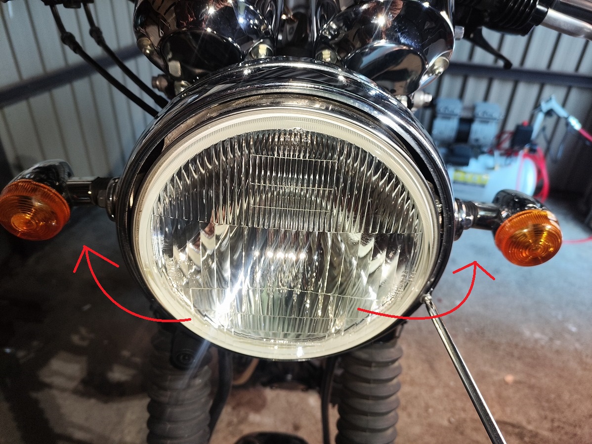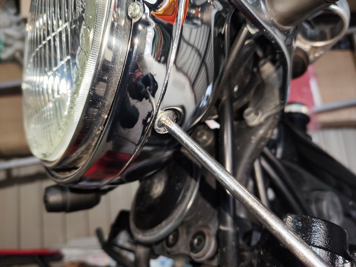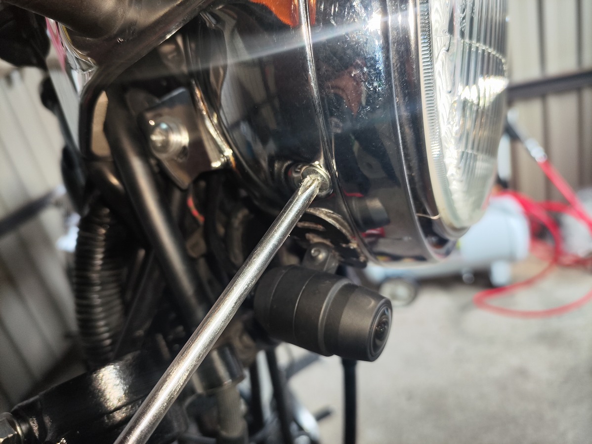 - ヘッドライトカバー左側の アジャスティングスクリュー をプラスドライバーで緩める