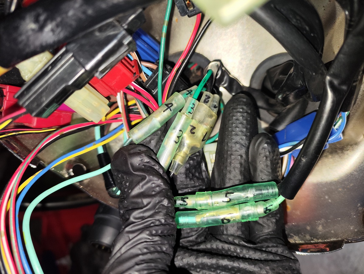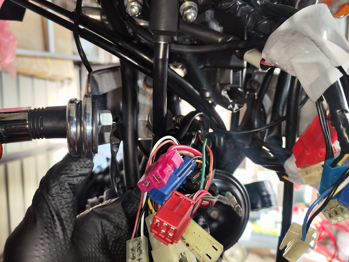 - ウインカー(ウインカー配線のみ6本のギボシ端子があり、取付時に間違えやすいため番号を書いておくなどの対策をしておくとよい)