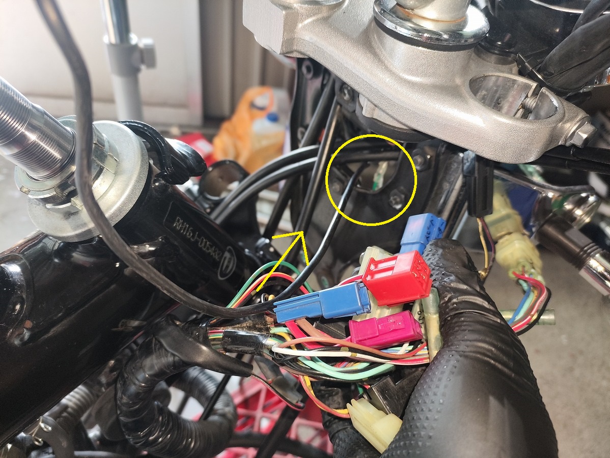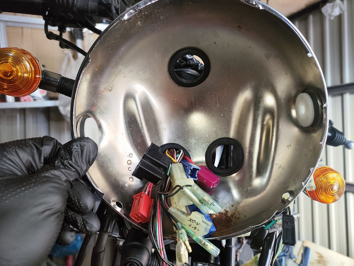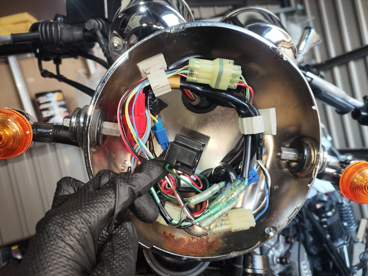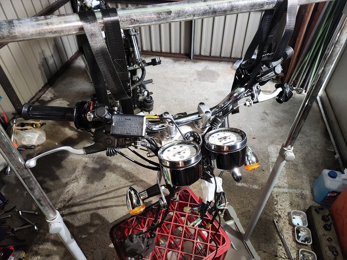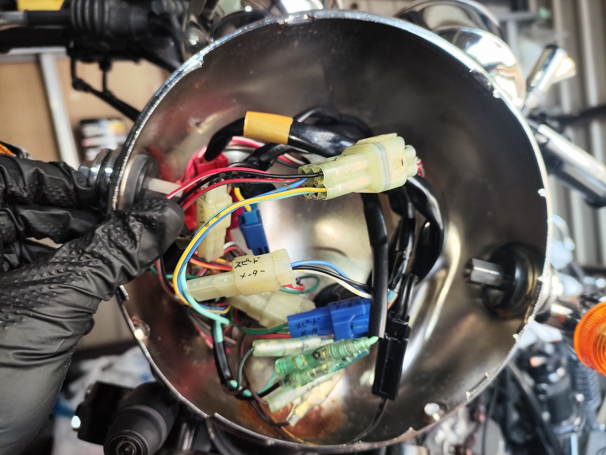 (ウインカー/スピードメーター/タコメーター/ハンドルスイッチ/キーシリンダー等) - 取り外し前の状態を参考に、ハーネスの取り回しをできる限り元に戻す