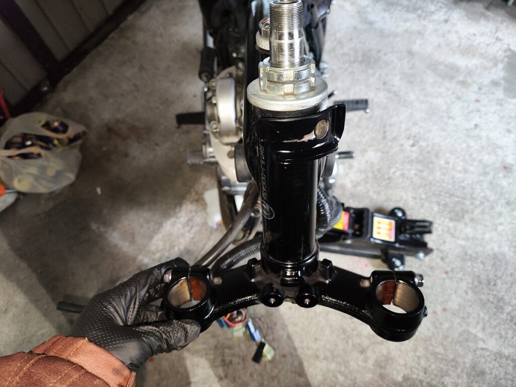 - トップブリッジ(フロント周り一式) をステムシャフトにセット