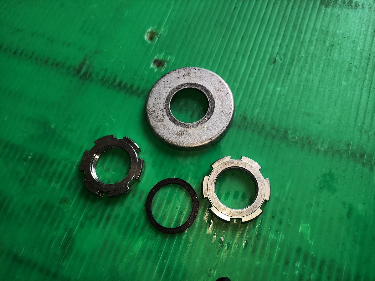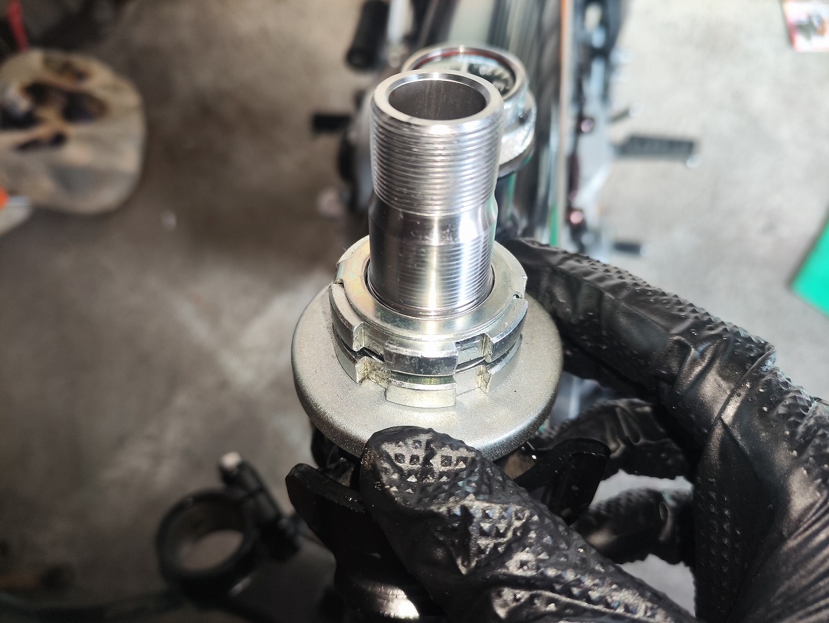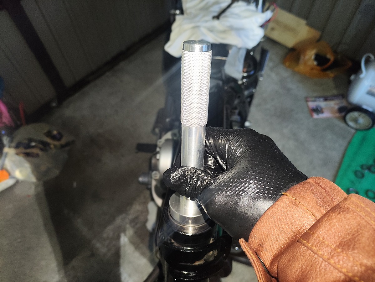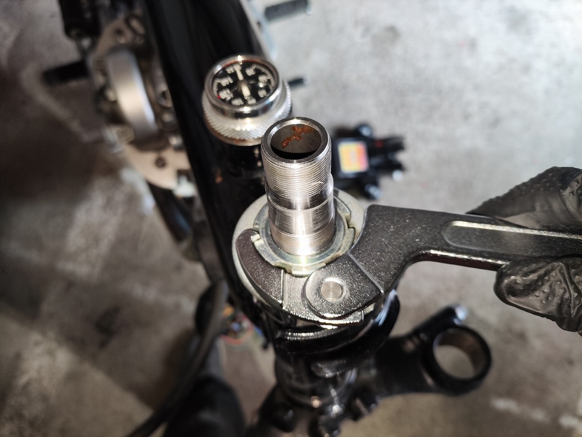 フックレンチでも締めれますが、トルク管理できないため非推奨です。(私はフックレンチを使用しています) - ベアリングレースドライバー