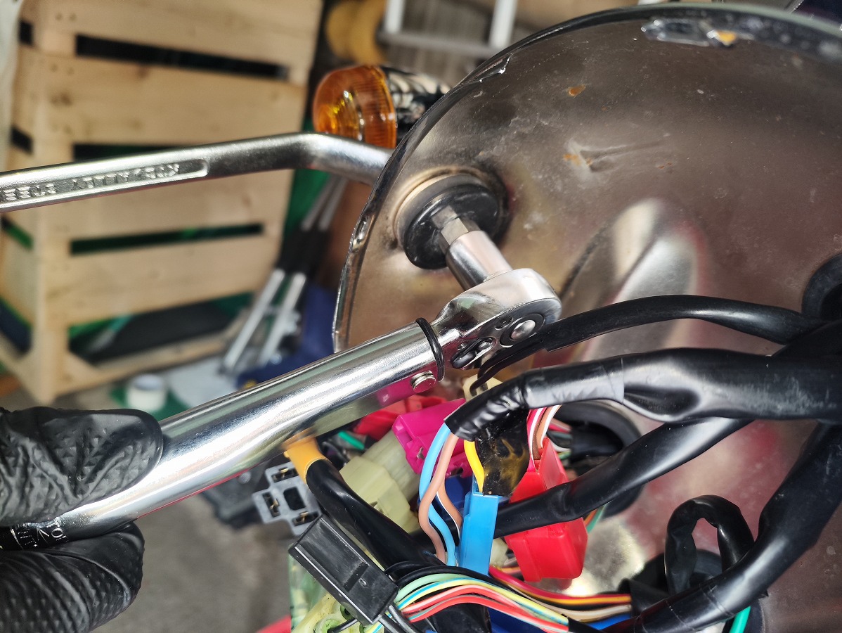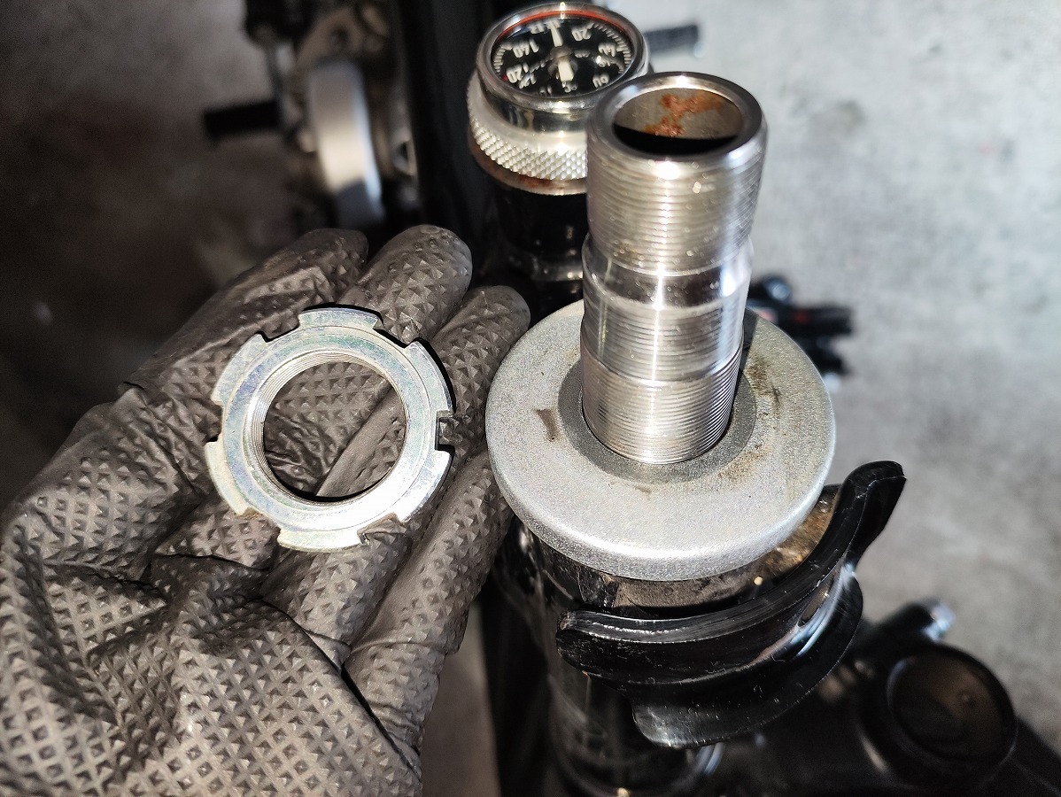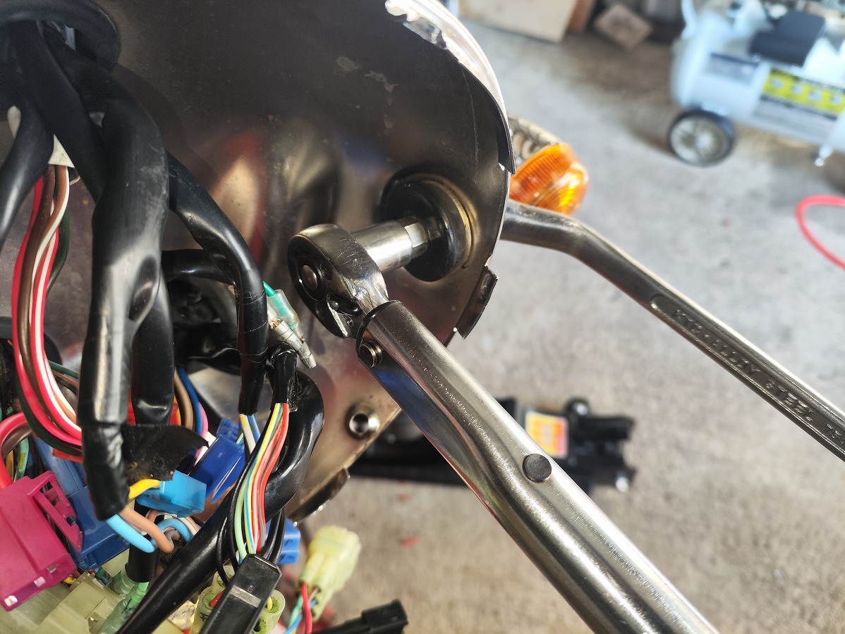 トルク管理のため、ステアリングナットレンチ(純正:90890-01385) の使用が望ましい(価格が高いため、私は汎用フックレンチを使用)