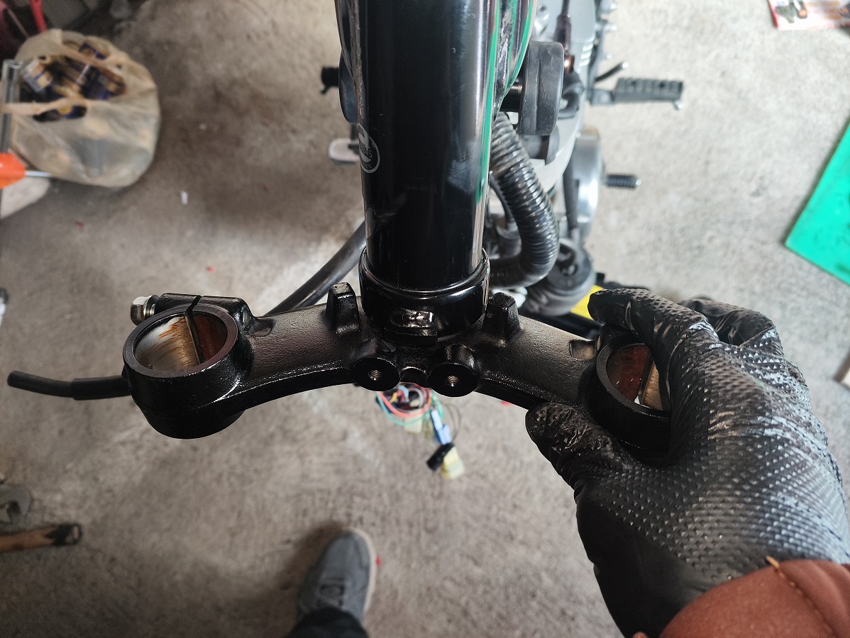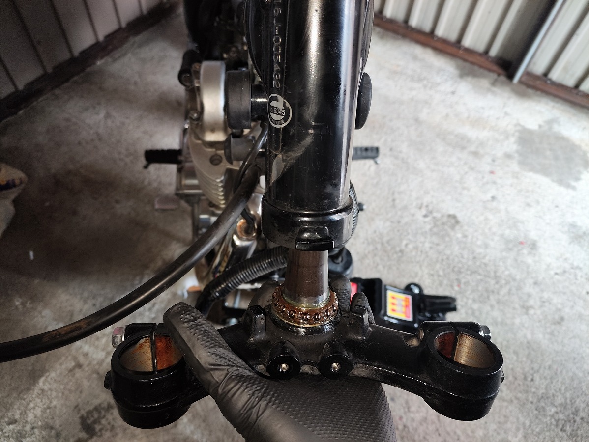 その結果、ステムベアリングのグリス切れを起こしやすいというSR400特有の弱点があります。