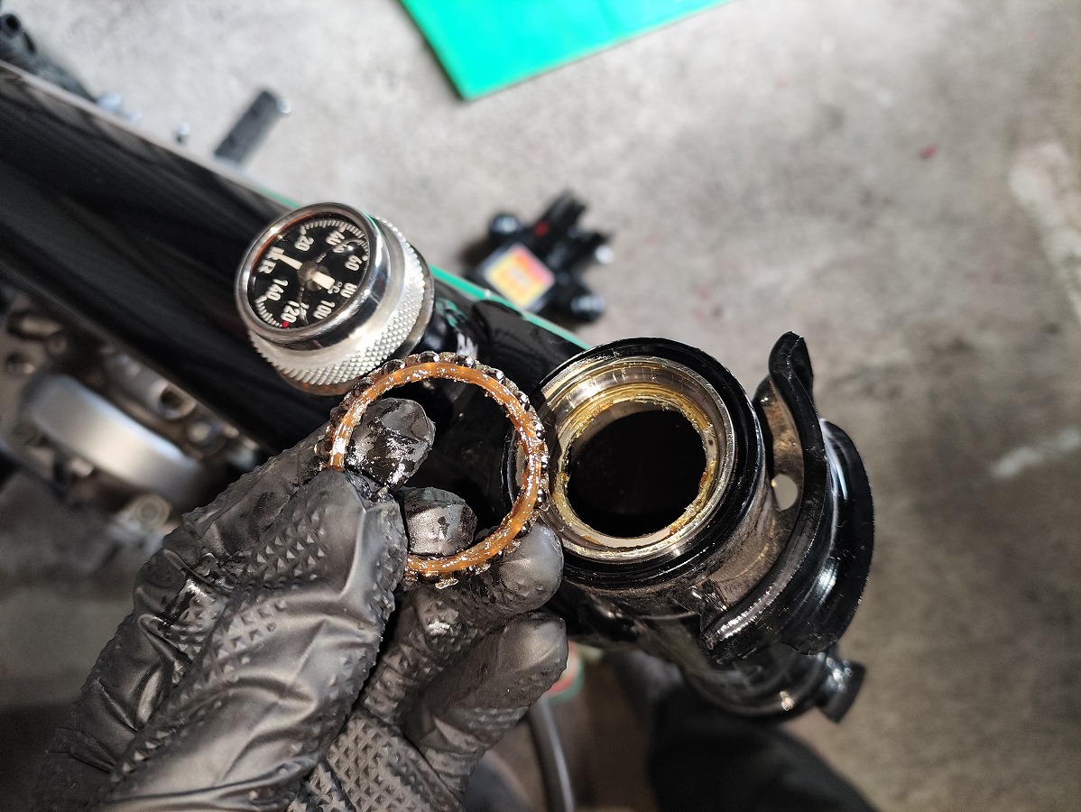 ステム周りのメンテナンスは分解範囲が広く、作業難易度は高め です。