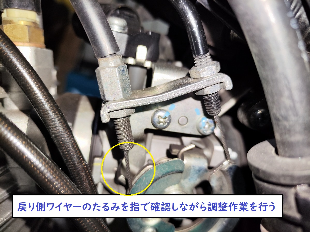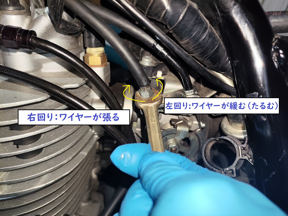 まずスロットルボディ側で基準を作り、その後ハンドル側で最終調整するのが基本となります。